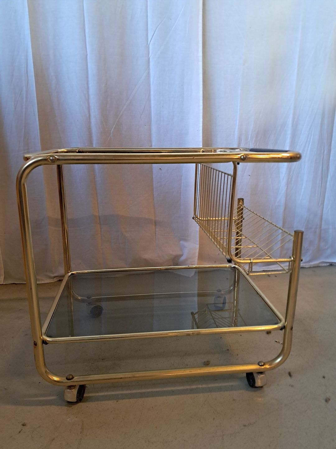 Rullebord i metal og glas, fra 1990erne. Det har brugsspor og mangler en gummi dut.(se foto) Højde 60cm Bredde 45cm Længde 64cm Emne nummer: 77253