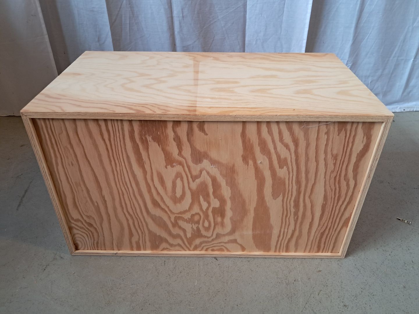 Reolkasse i krydsfiner, fra 2000erne. Den har brugsspor og der medfølger ikke ophæng. Højde 35cm Bredde 60cm Dybde 33cm Emne nummer: 77258