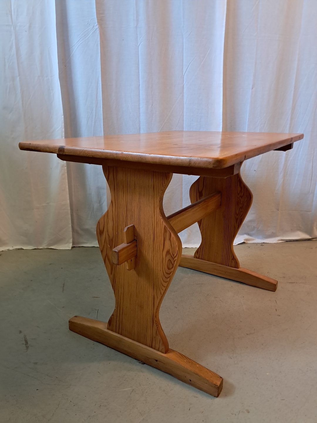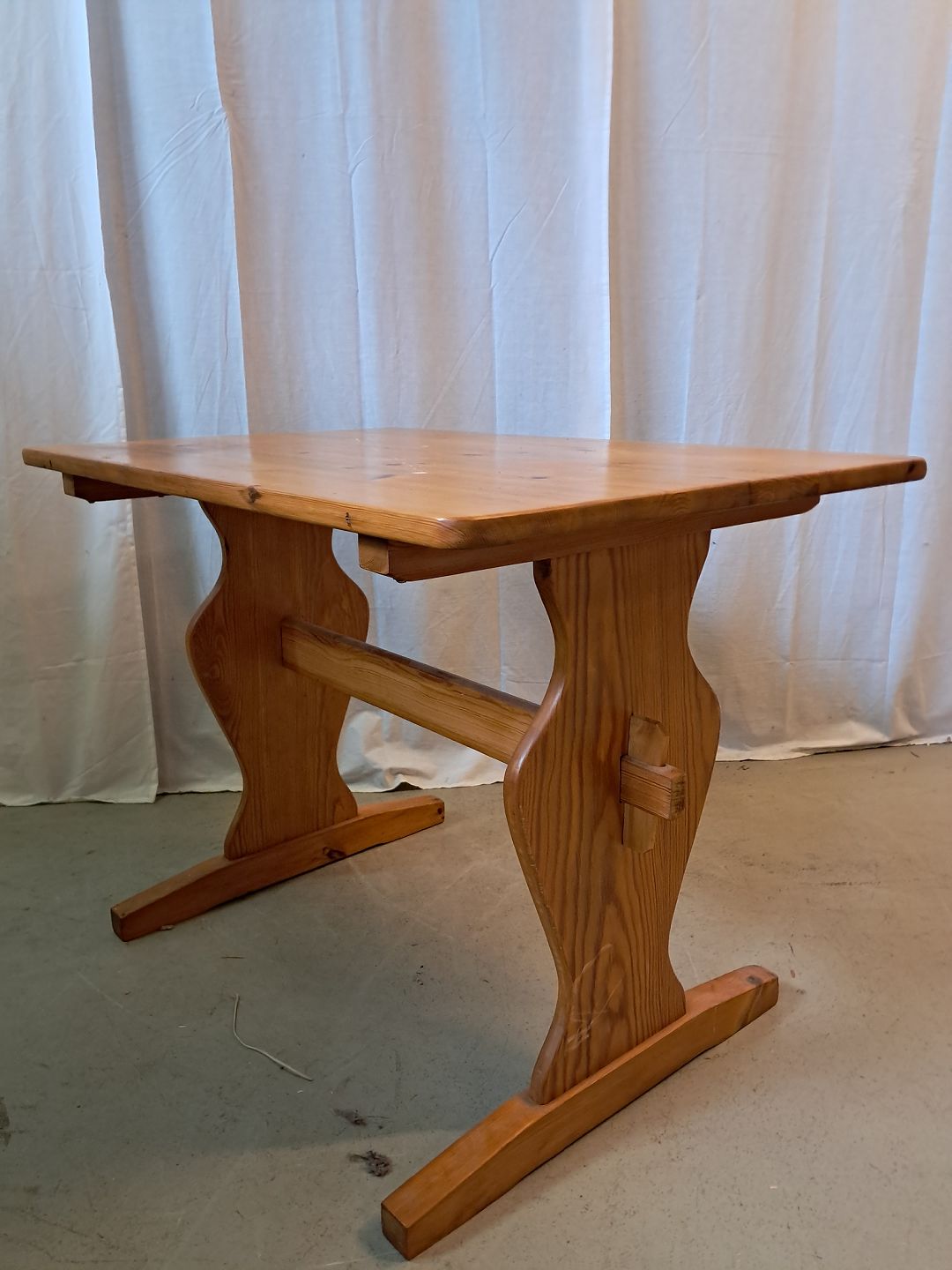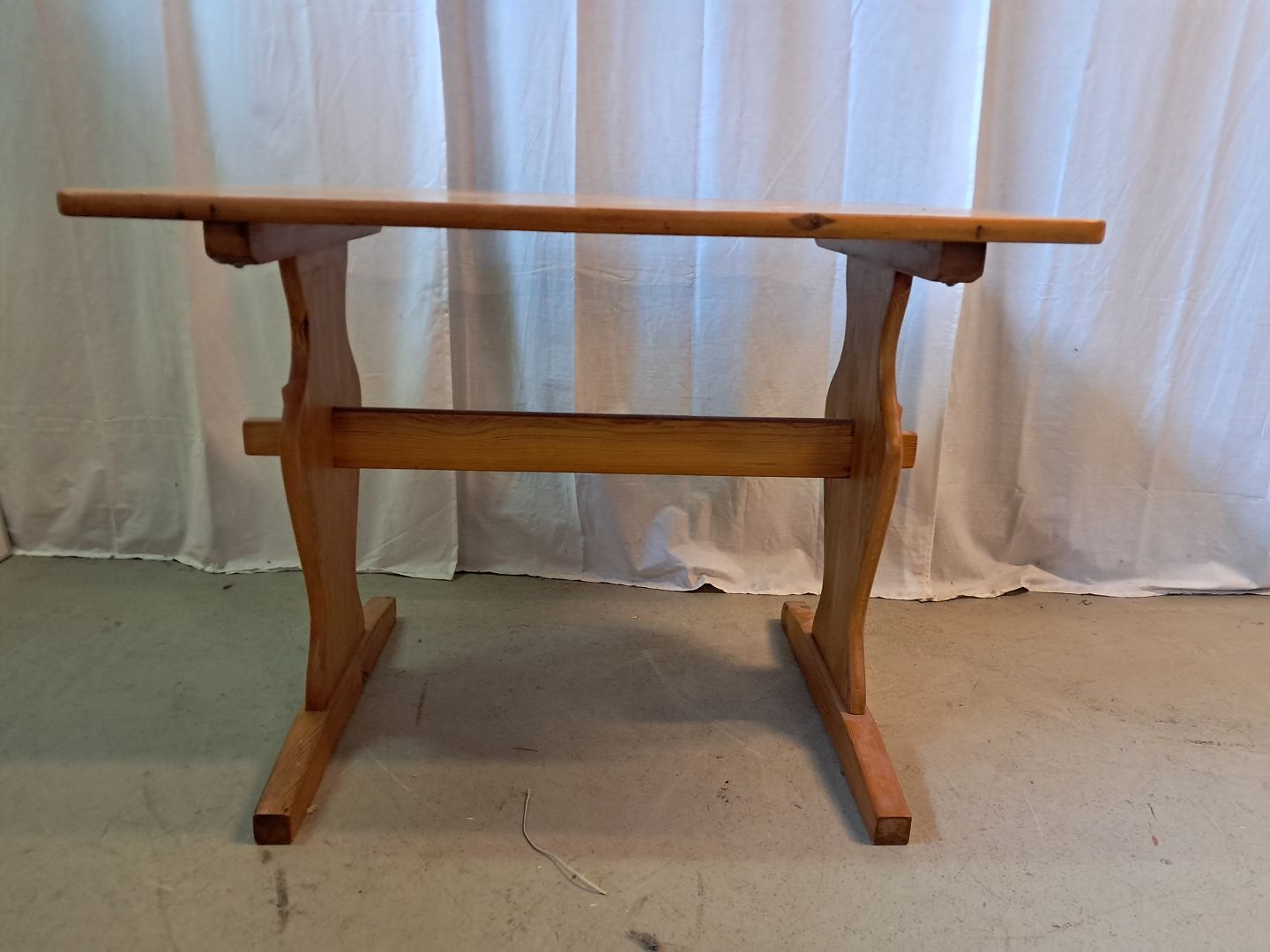 Bord i massivt fyrretræ, fra 1980erne. Det har brugsspor. Højde 70cm Bredde 65cm Længde 98cm Emne nummer: 77289