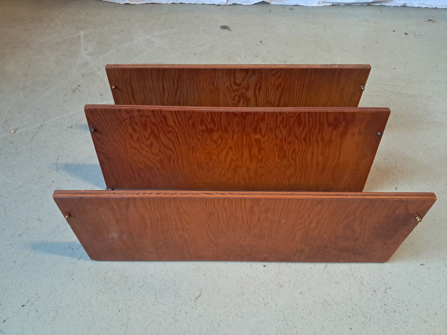 3 Hylder i fkrydsfiner, fra 1960erne. De har brugsspor. Højde 20cm Bredde 60cm Dybde 23cm Emne nummer: 77294