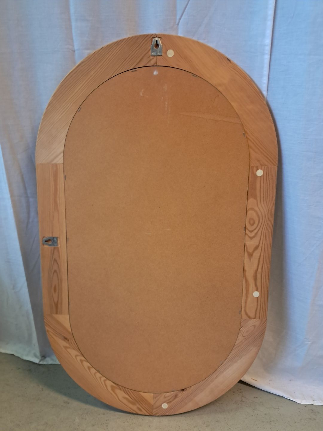 Spejl i massivt fyrretræ, fra 1980erne. Det har brugsspor. Højde 100cm Bredde 60cm Emne nummer: 77336