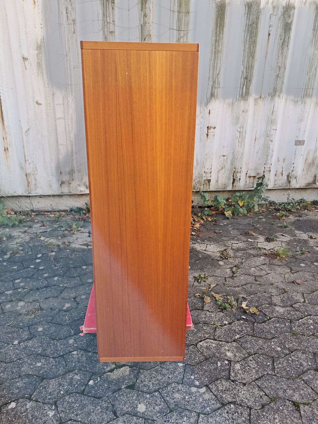 Reol i fineret teaktræ, fra 1970erne. Den har brugsspor. Højde 104cm Bredde 120cm Dybde 31cm Emne nummer: 77343
