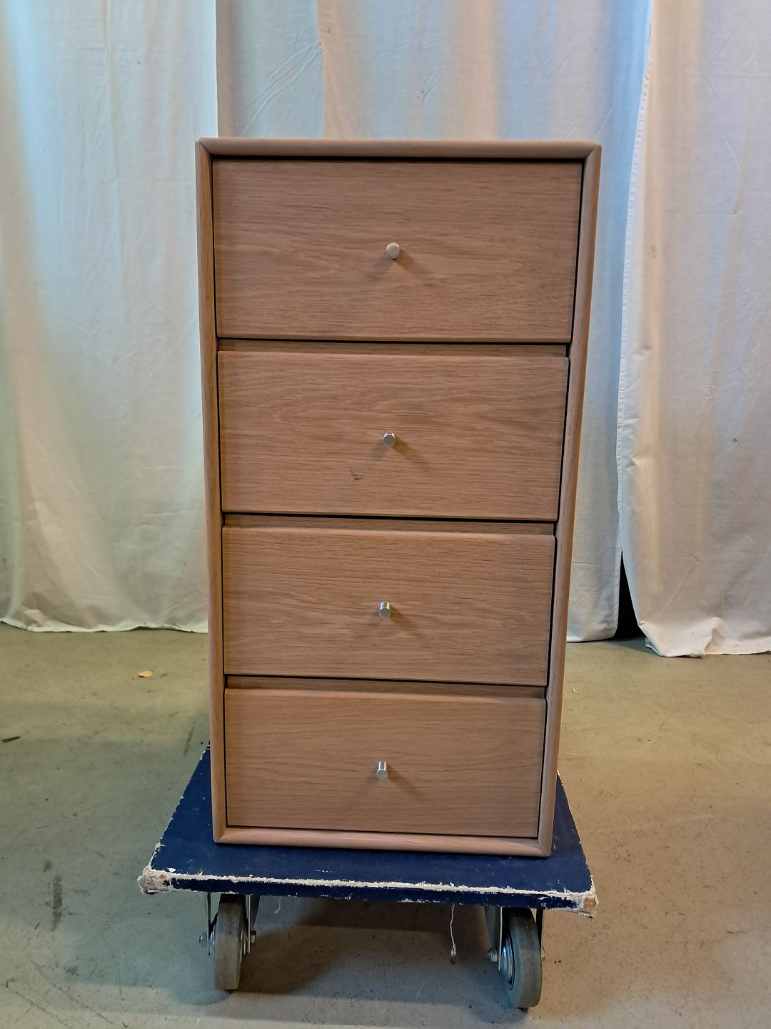 Montana kommode i fineret egetræ, fra 2010erne. Den har små brugsspor og der medfølger ikke ophæng. Højde 70cm Bredde 36cm Dybde 39cm Emne nummer: 77400