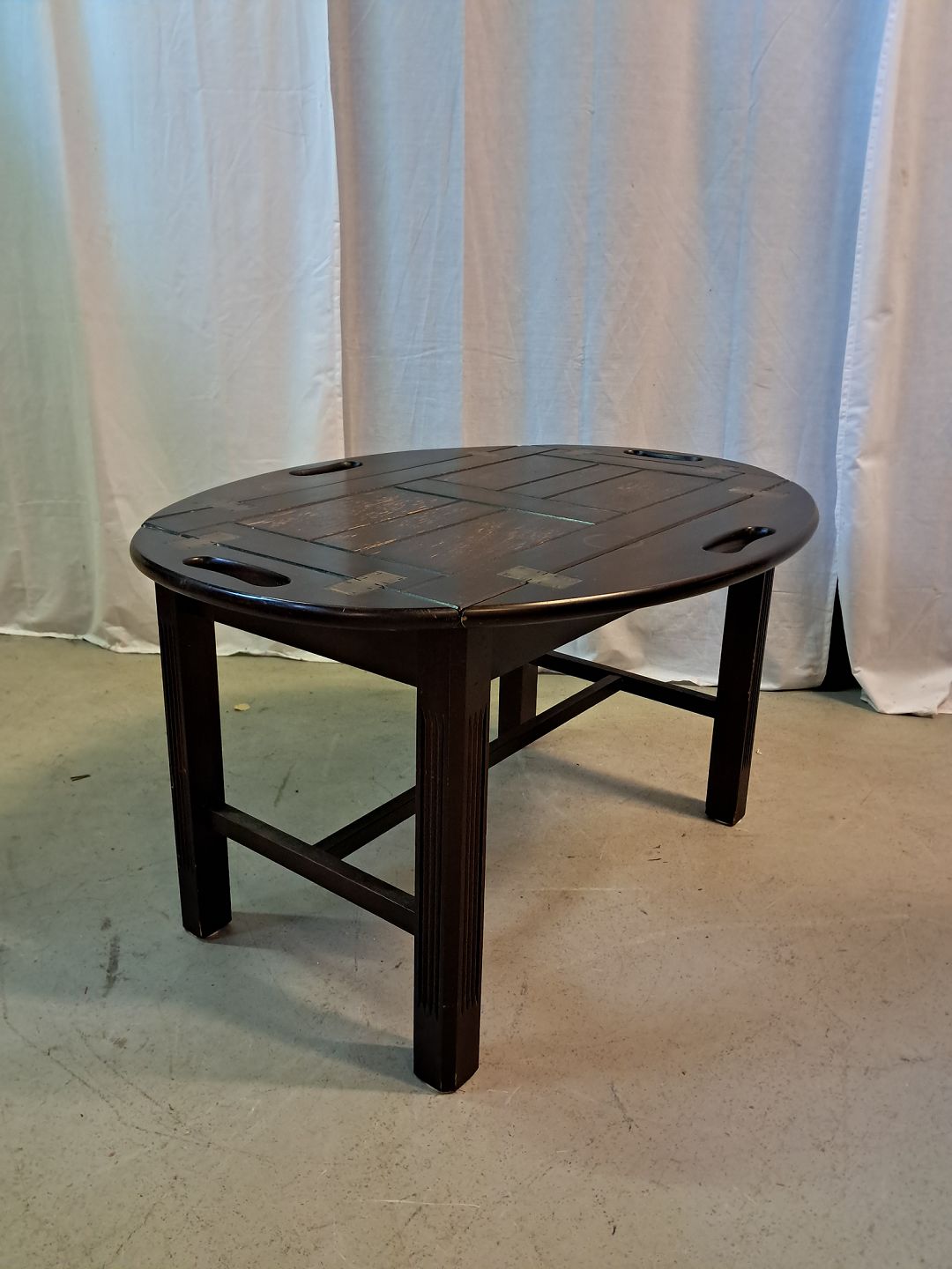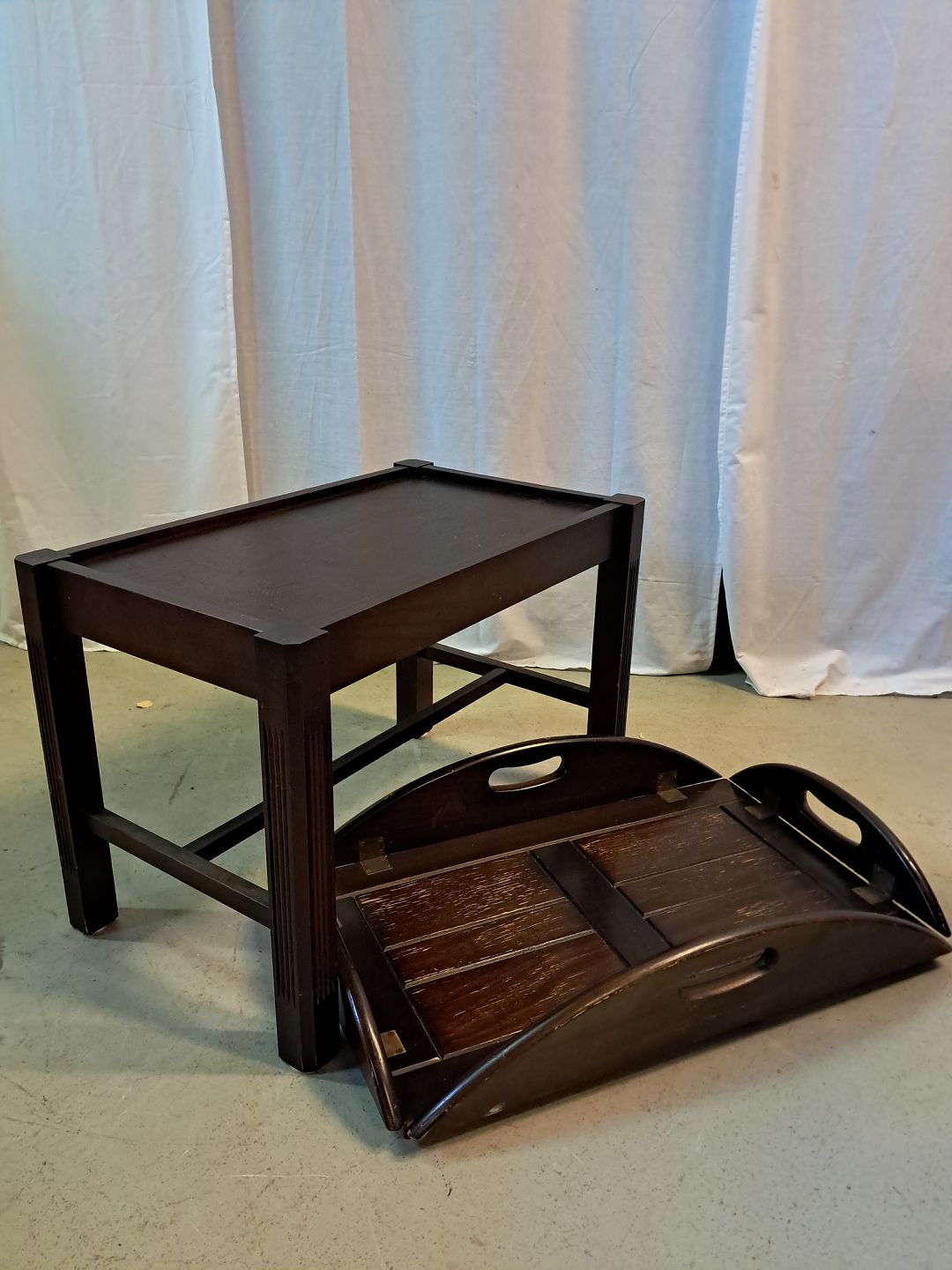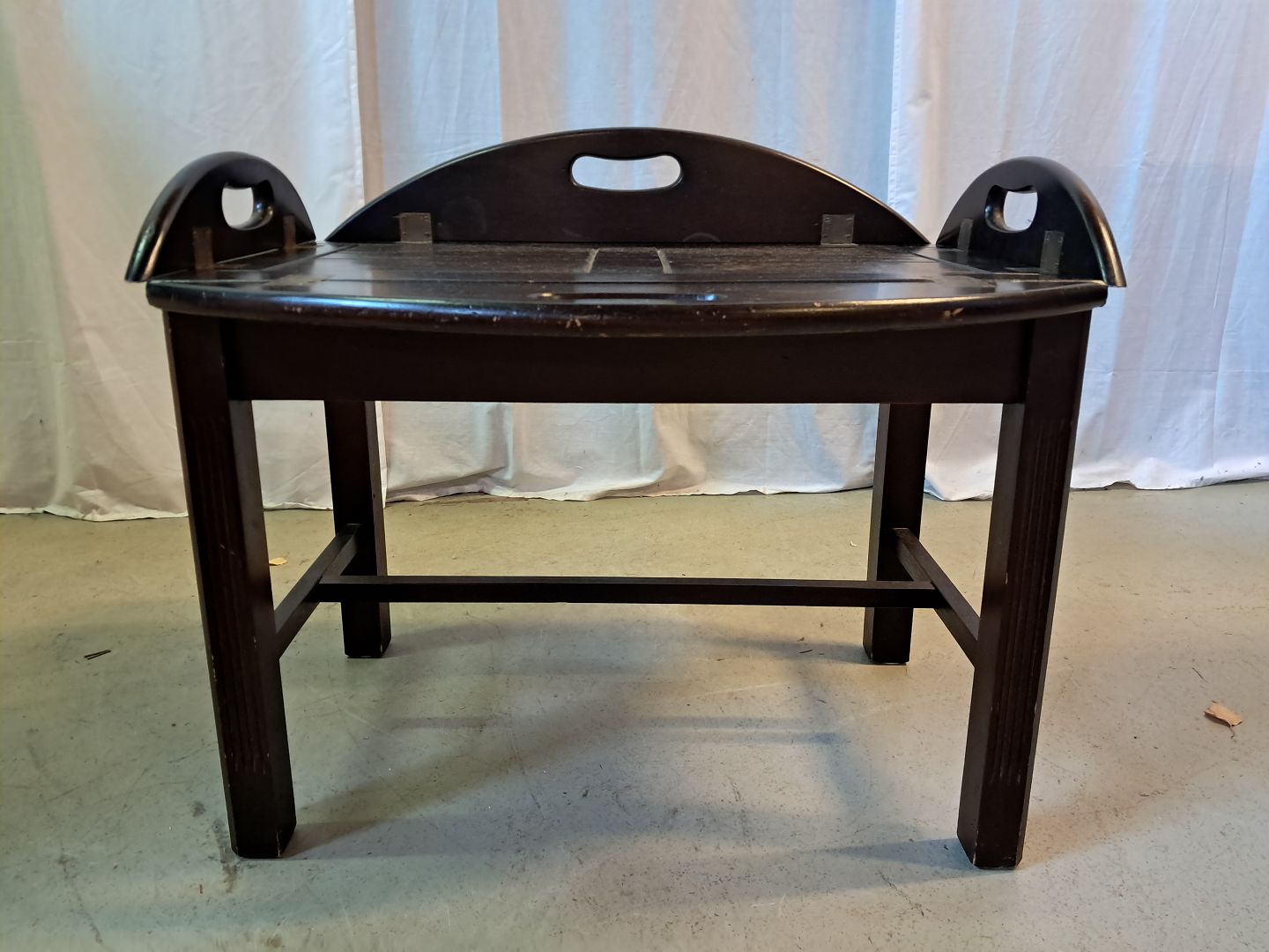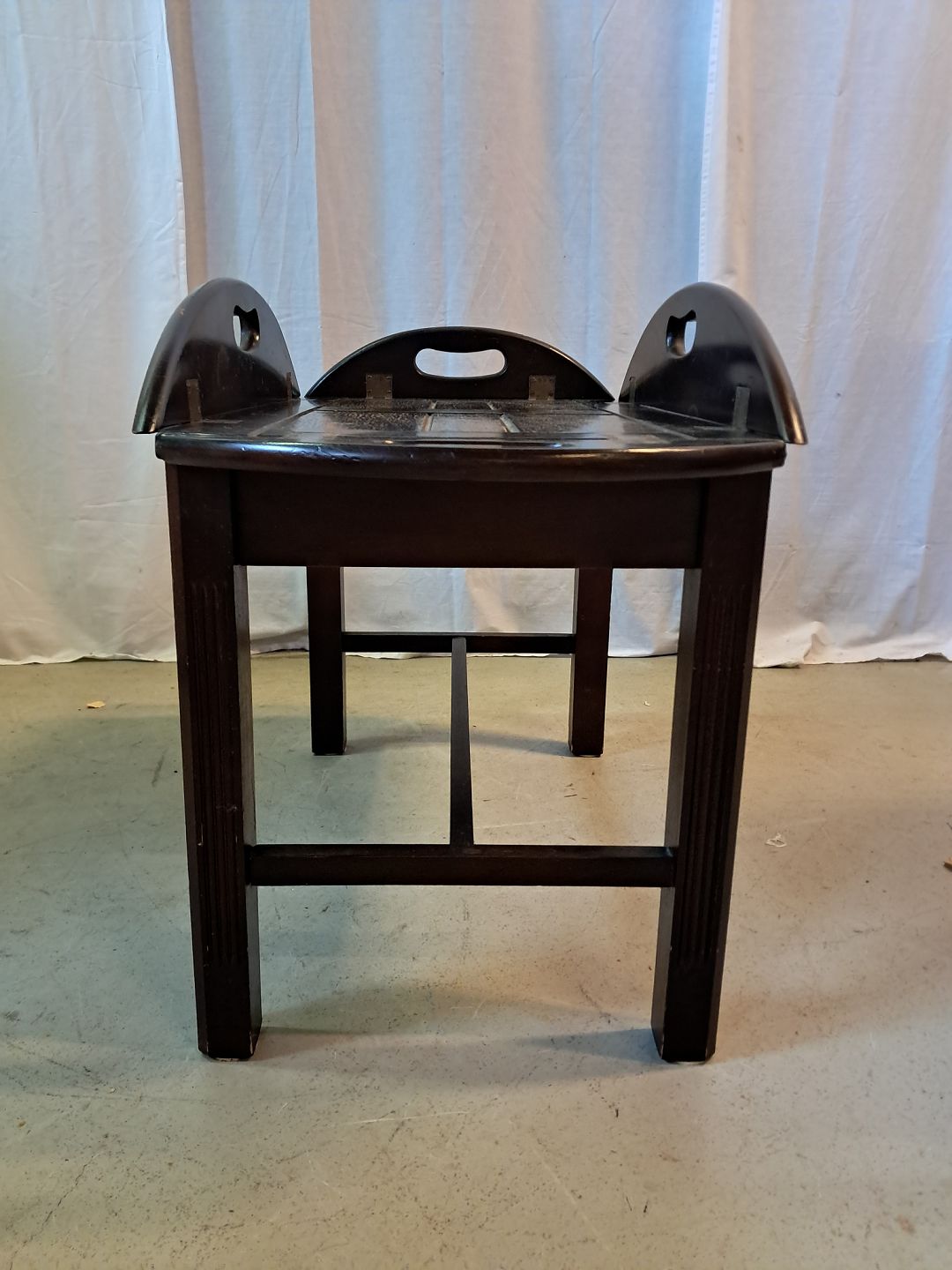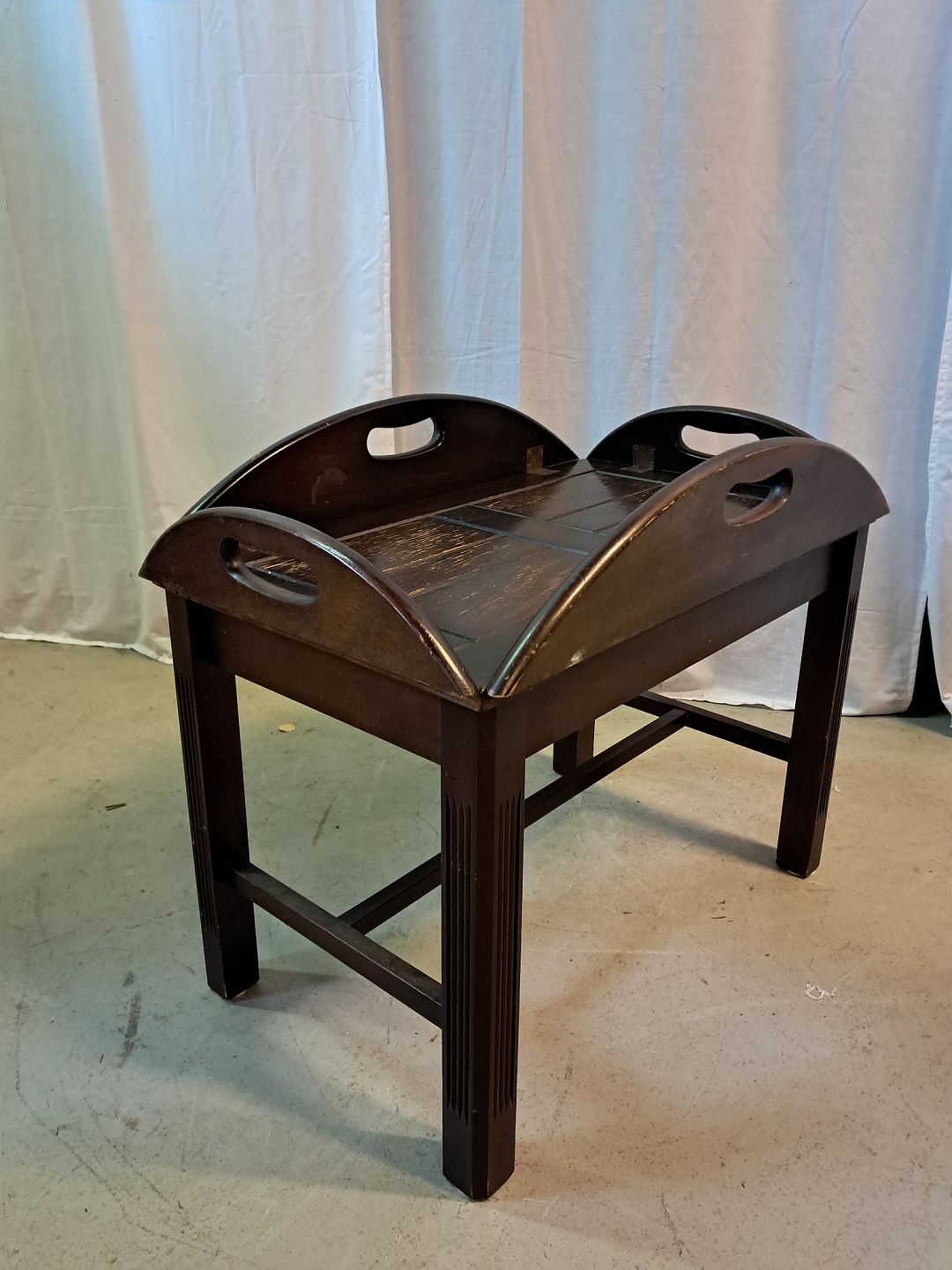 Butlers tray i fineret bøgetræ, fra 1980erne. Det har brugsspor. Højde 48cm Bredde 64cm Længde 84cm Emne nummer: 77401