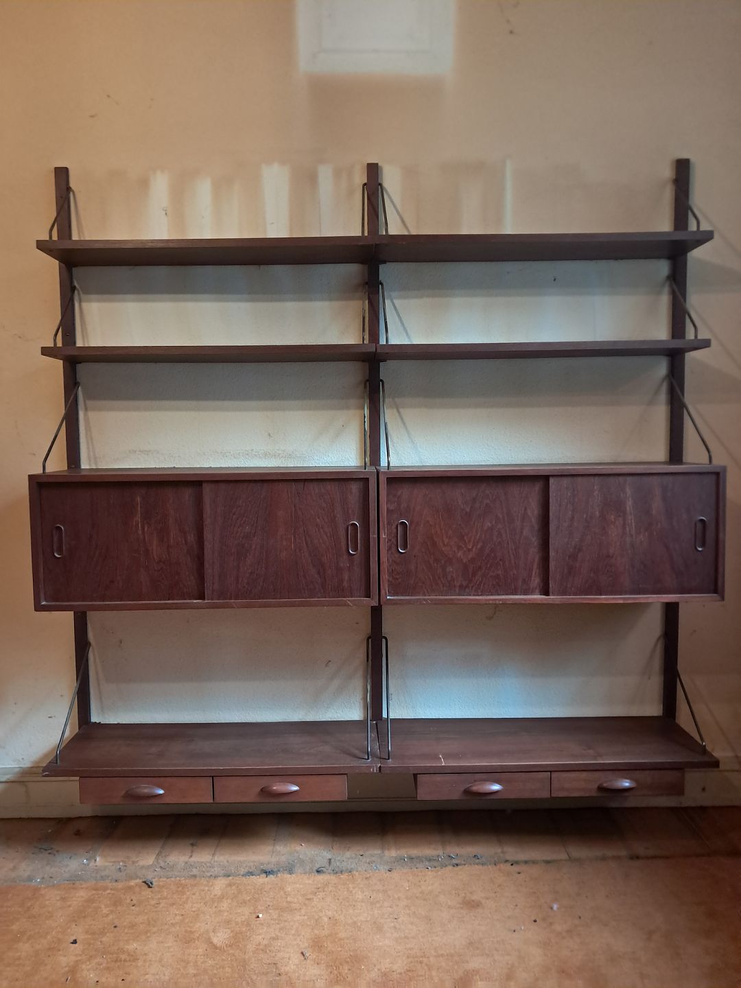 Vangesystems reol i fineret teaktræ, fra 1960erne.