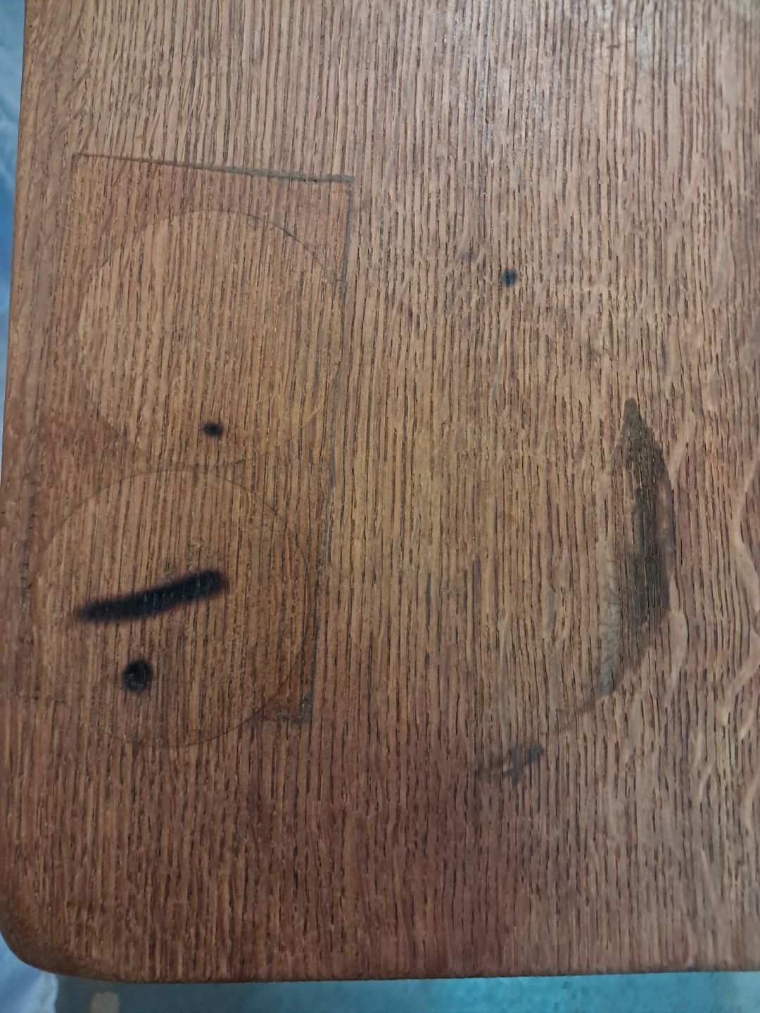 Sofabord i massivt egetræ, fra 1980erne. Det har brugsspor og et brændemærke. Højde 58cm Bredde 54cm Længde 120cm Plade tykkelse 4,5cm Emne nummer: 77408