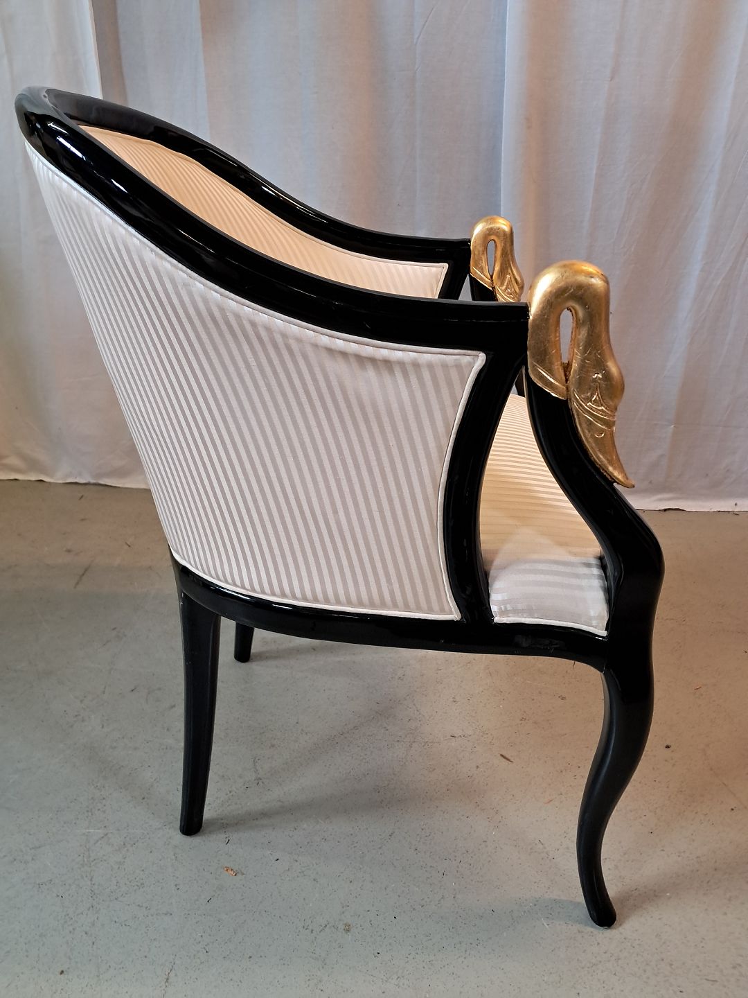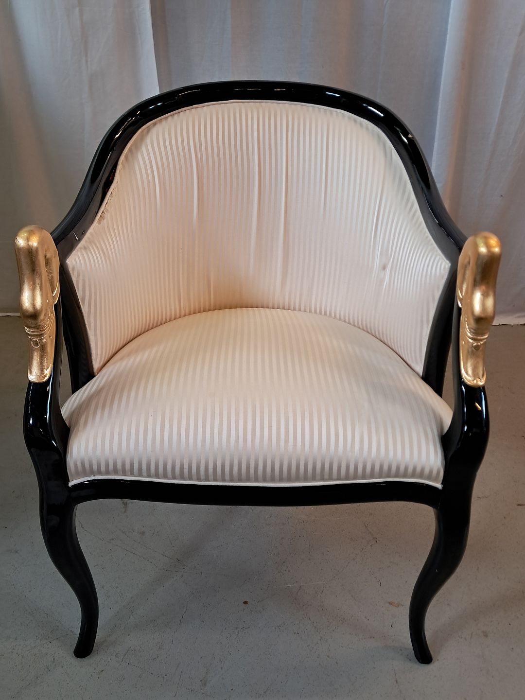 Lysberg Hansen og Terp armstol i malet træ, fra 1990erne. Den har brugsspor og defekt betræk. (se foto) Ryghøjde 83cm Sædehøjde 46cm Emne nummer: 77427