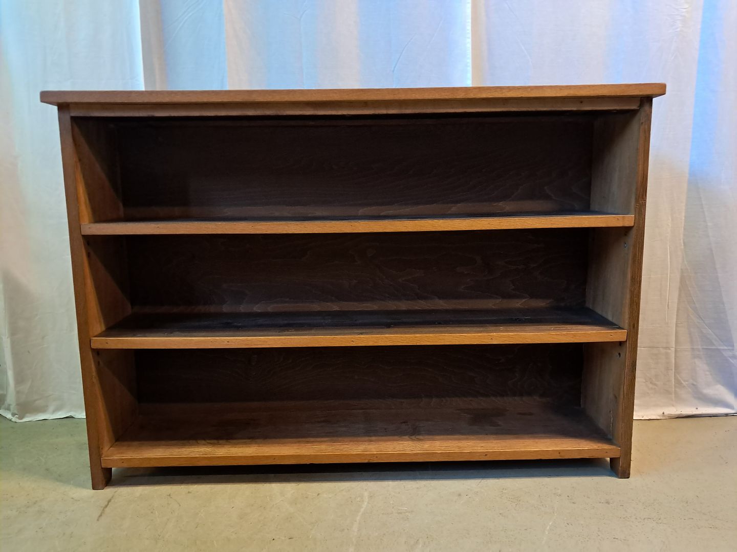 Reol i massivt egtræ, fra 1910erne. Den har brugsspor. Højde 88cm Bredde 128cm Dybde 27cm Emne nummer: 77451