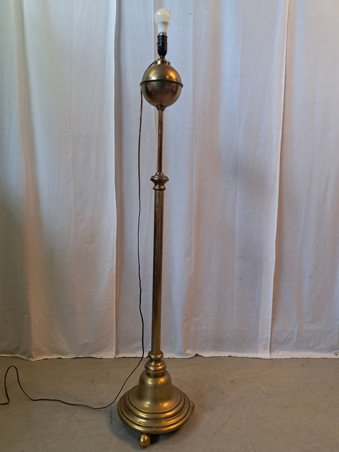 Standerlampe i messing, fra 1910erne. Den har brugsspor. Højde 150cm Diameter på fod 34cm Emne nummer: 77507