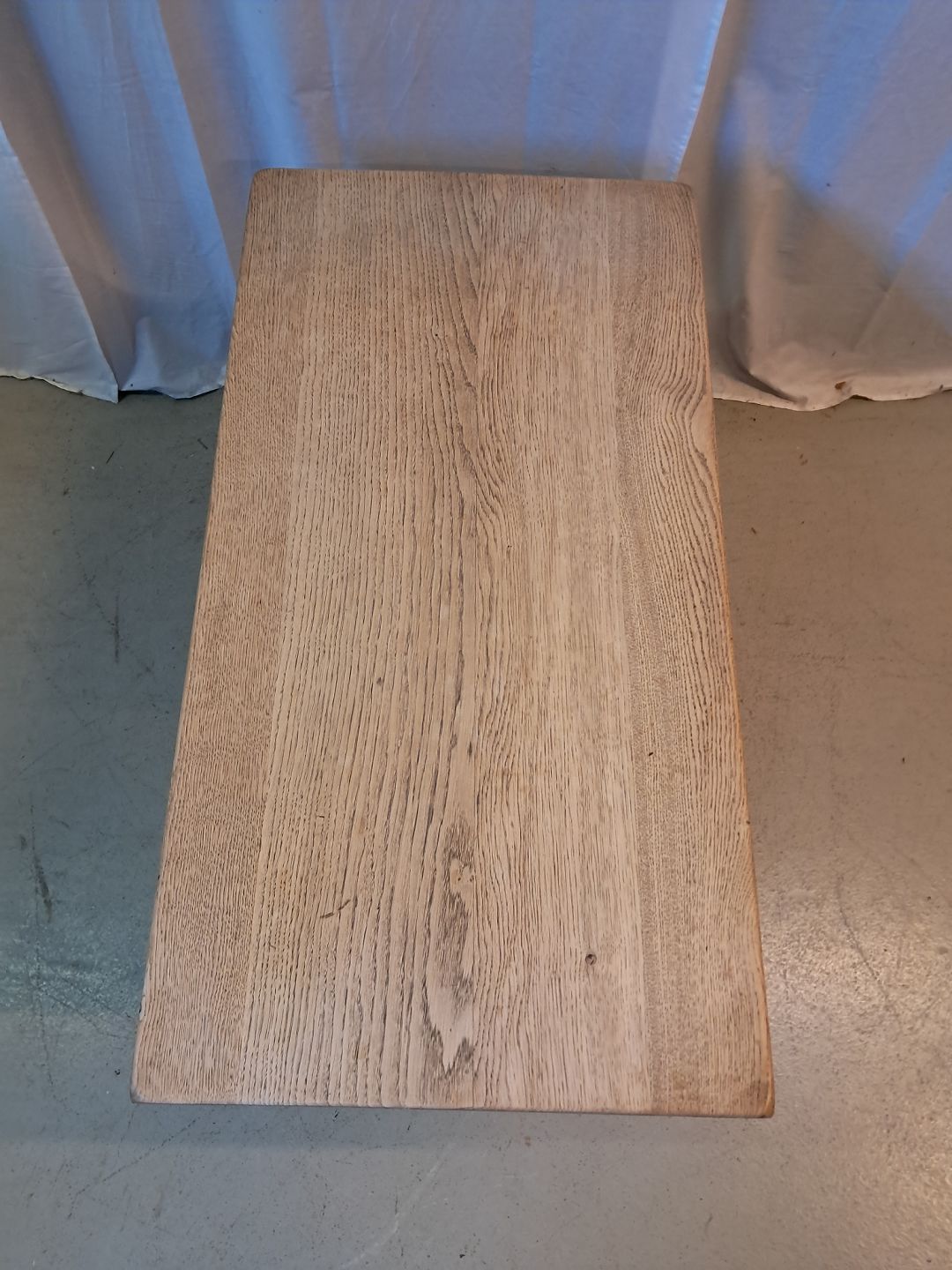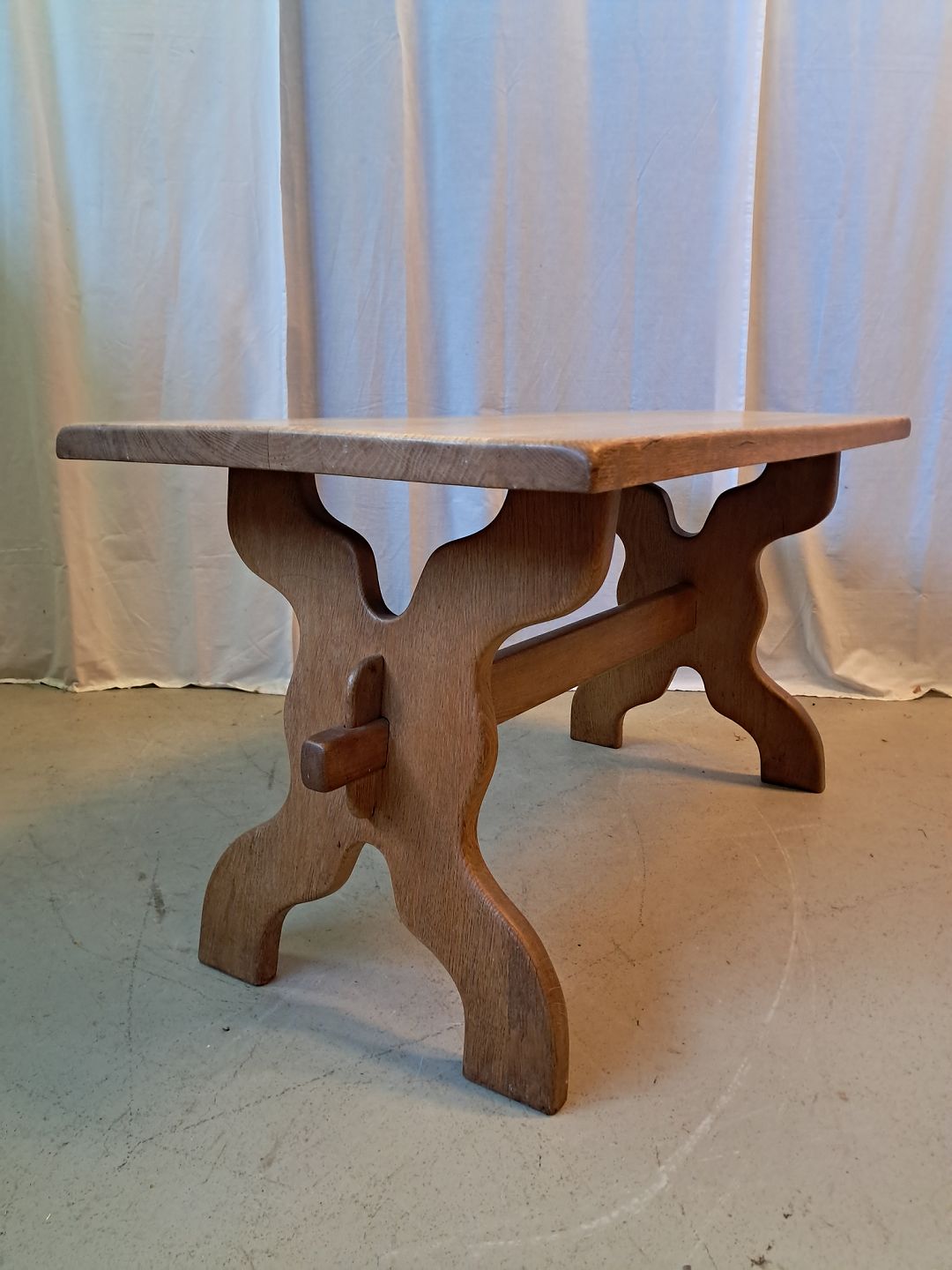 Sofabord i massivt egetræ, fra 1980erne. Det har brugsspor. Højde 56cm Bredde 55cm Længde 105cm Emne nummer: 77520