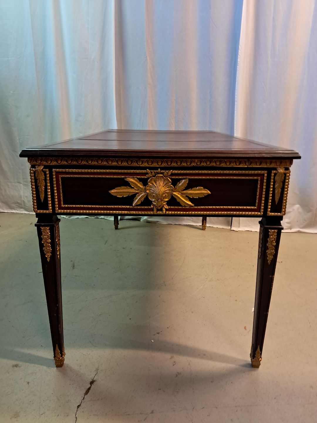 Skrivebord i fineret mahogni, fra 1990erne. Det har brugsspor. Højde 73cm Bredde 153cm Dybde 76cm Højde fra gulv til underkant 62cm Emne nummer: 77538