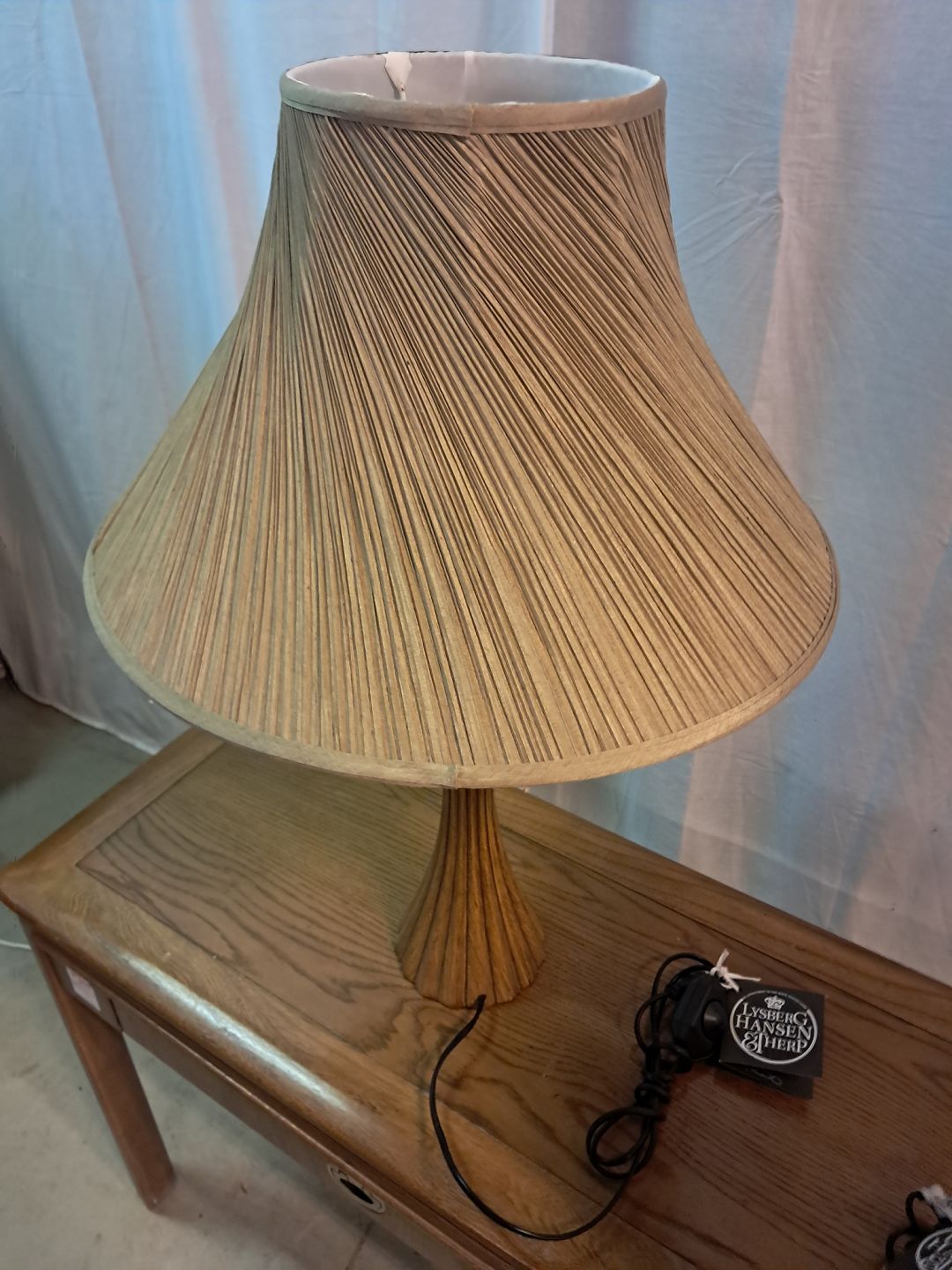 2 Lysberg Hansen og Therp bordlamper i pocelæn med skærme, fra 0erne. De har brugsspor. Højde 71cm Skærm diameter 48cm Emne nummer: 77568