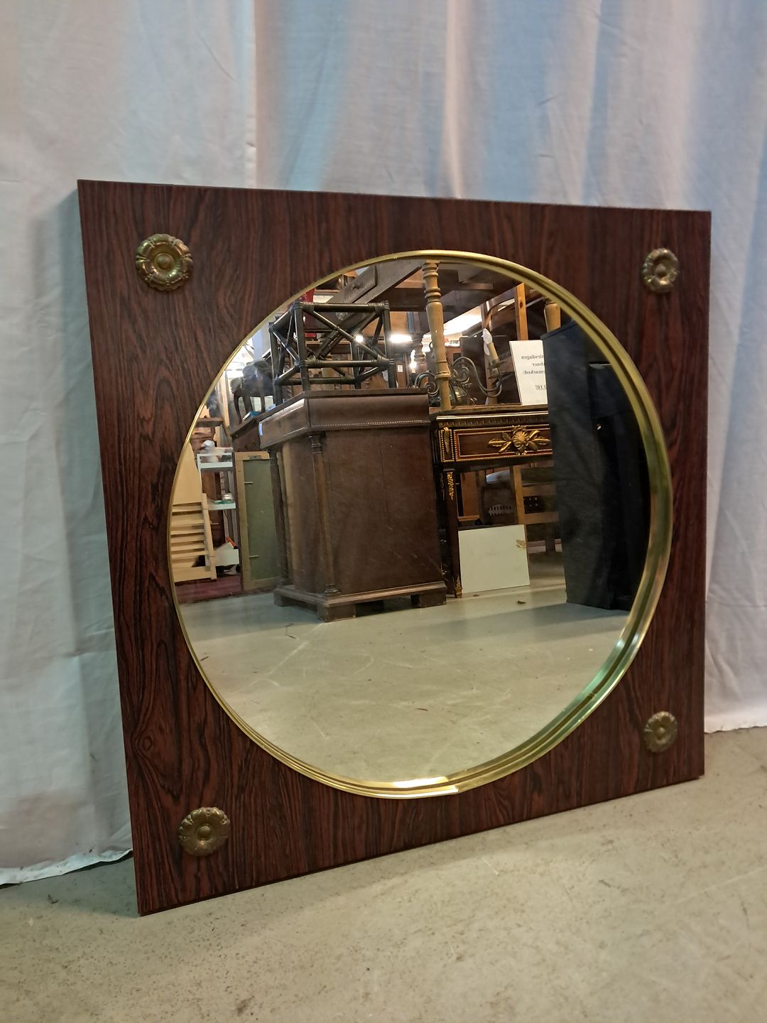 Spejl i fineret palisander, fra 1960erne. Det har brugsspor. Højde 75cm Bredde 75cm Emne nummer: 77593