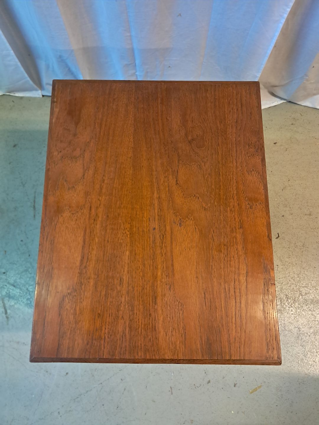 Kassemøbel i fineret teaktræ, fra 1960erne. Det har brugsspor og en defekt på det ene ben. Højde 57cm Bredde 51cm Længde 64cm Emne nummer: 77616