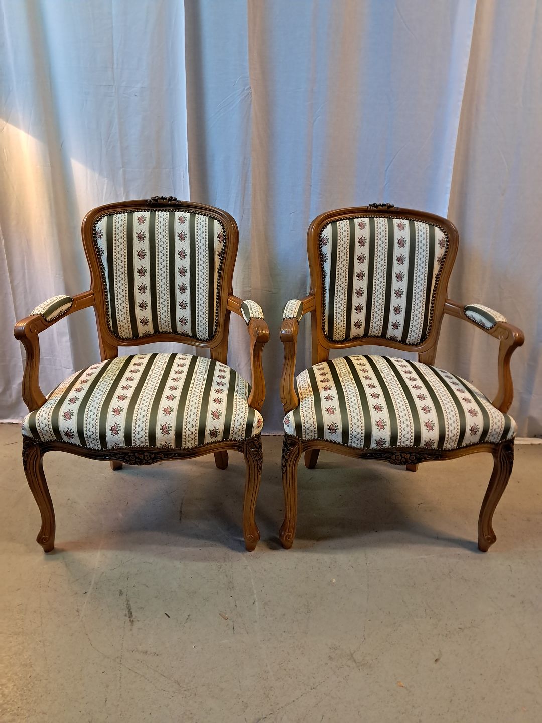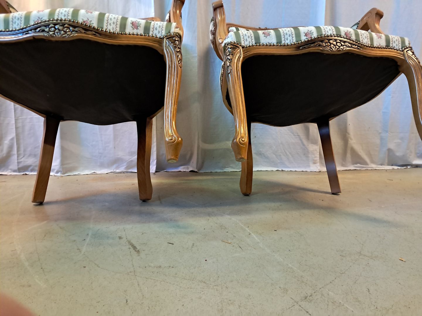 2 Rokokostole i massivt bøgetræ, fra 1980erne. De har brugsspor. Ryghøjde 90cm Sædehøjde 44cm Emne nummer: 77665