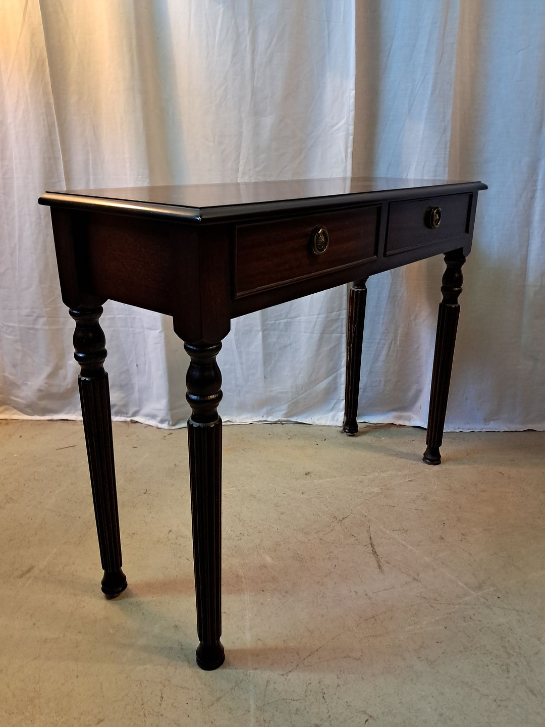 Konsol i fineret mahogni, fra 1990erne. Det har brugsspor. Højde 60cm Bredde 77cm Dybde 28cm Emne nummer: 77667
