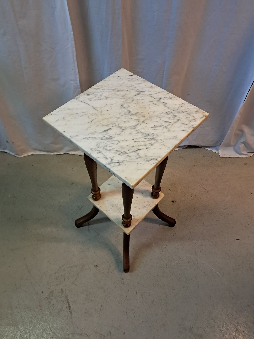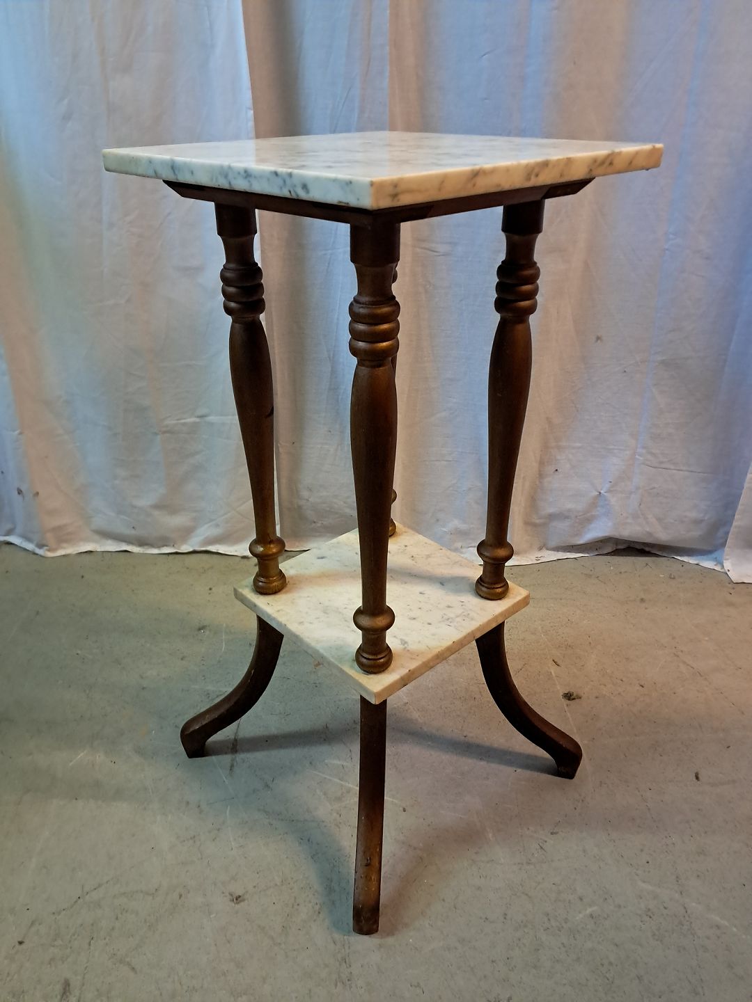 Guldmalet piedestal med marmorplader, fra 1920erne. Den har brugsspor. Højde 76cm Bredde 37cm Dybde 37cm Emne nummer: 77698