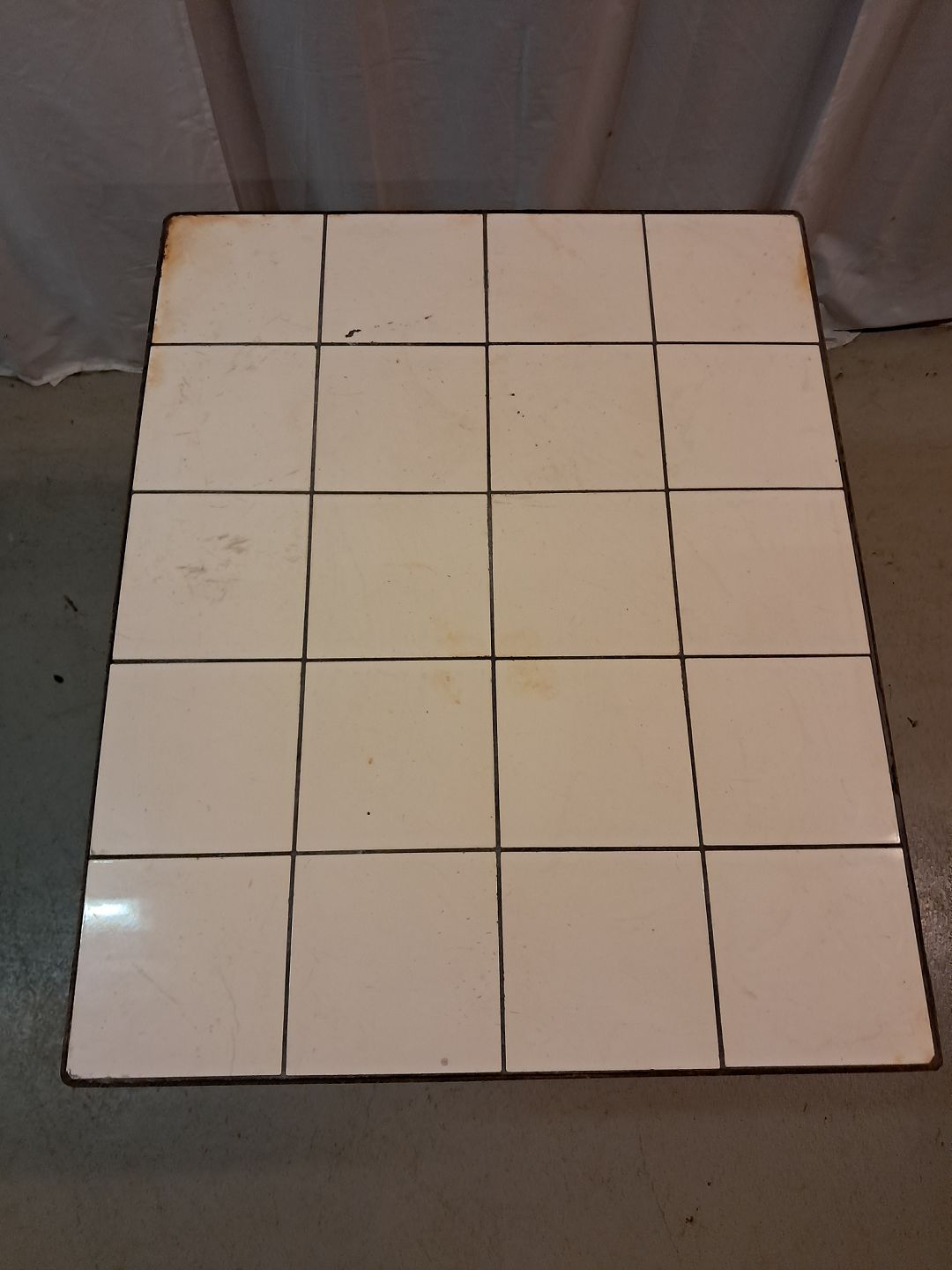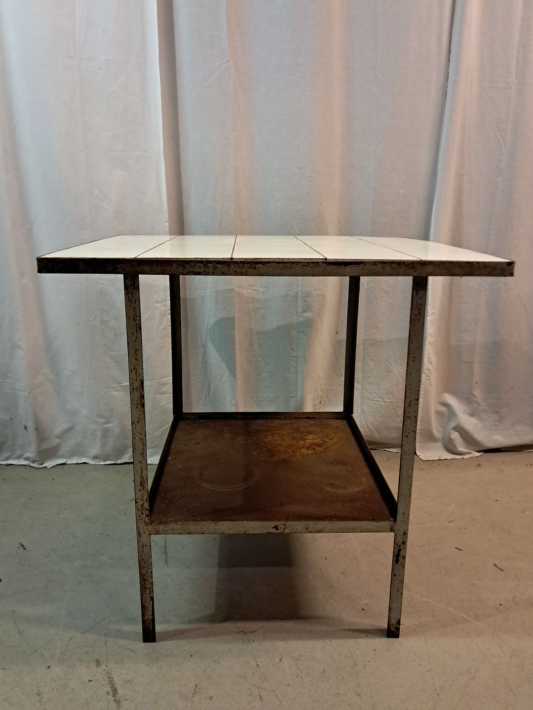 Gasbord i metal med fliser, fra 1930erne. Det har brugsspor. Højde 75cm Bredde 62cm Længde 78cm Emne nummer: 77705