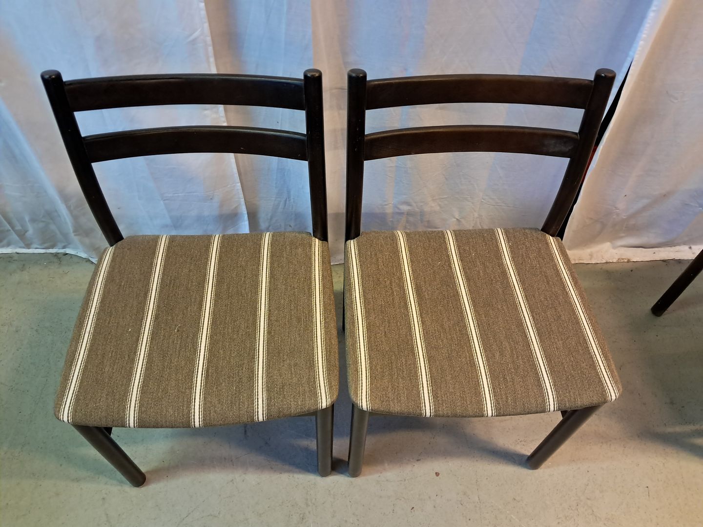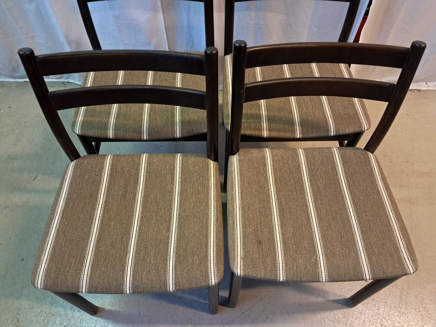4 Stole i bejdset massivt bøgetræ, fra 1980erne. De har brugsspor. Ryghøjde 79cm Sædehøjde 43cm Emne nummer: 77759