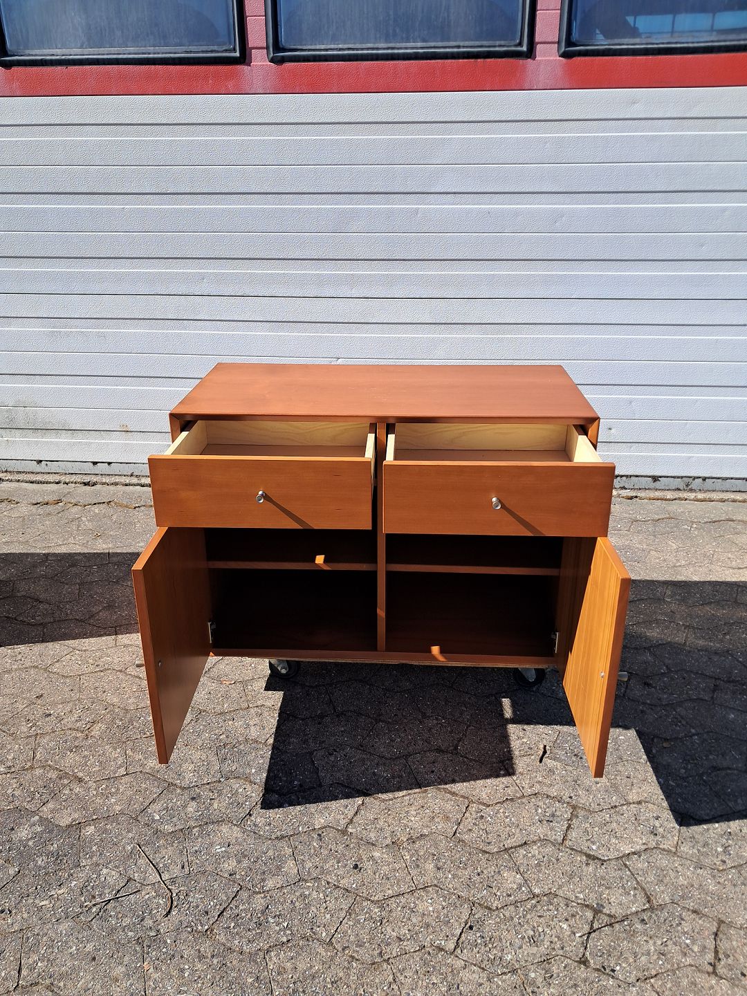Vægskab i fineret kirsebær, fra 2000erne. Det har brugsspor og der medfølger ophæng. Højde 55cm Bredde 80cm Dybde 40cm Emne nummer: 77976