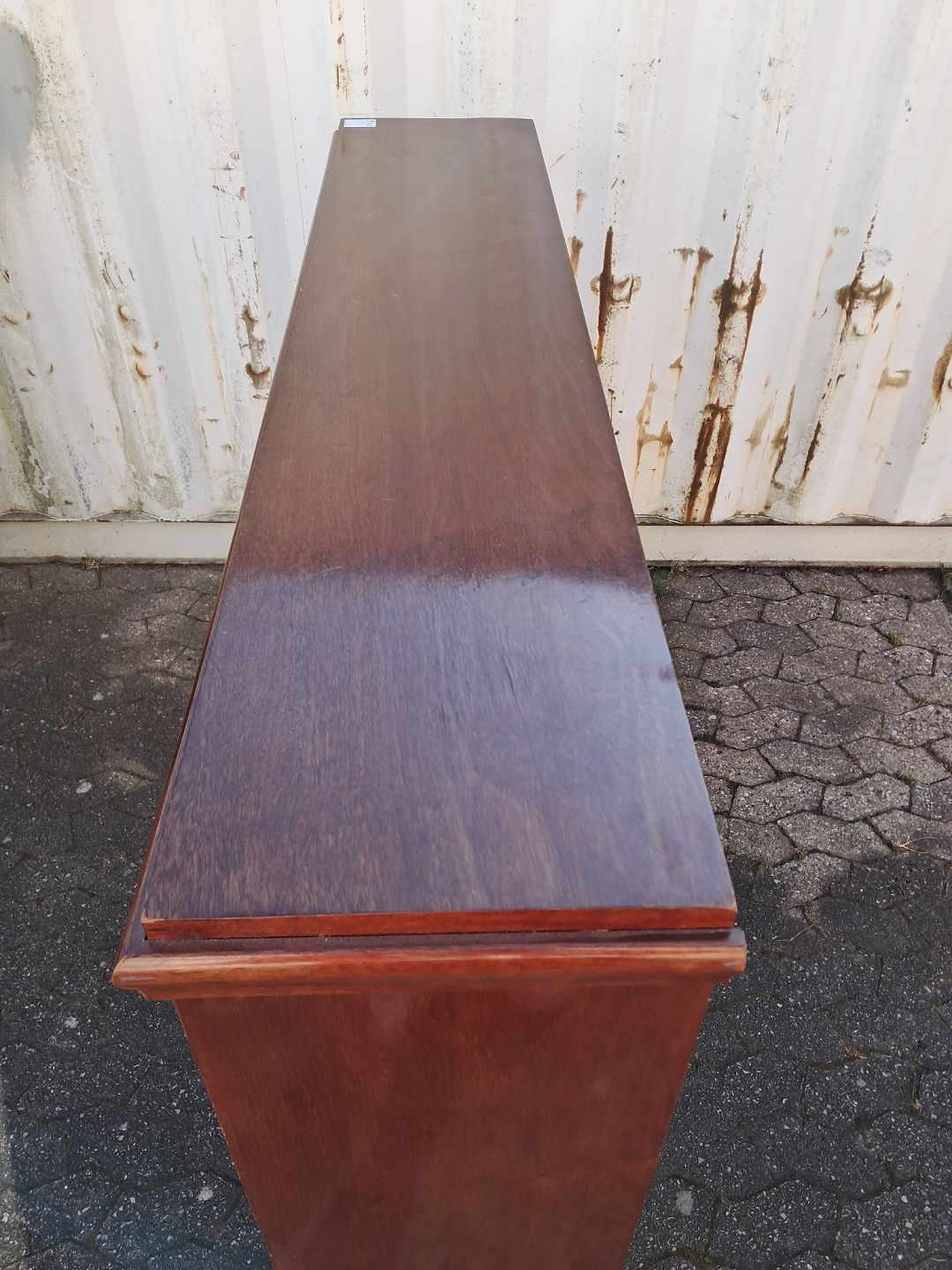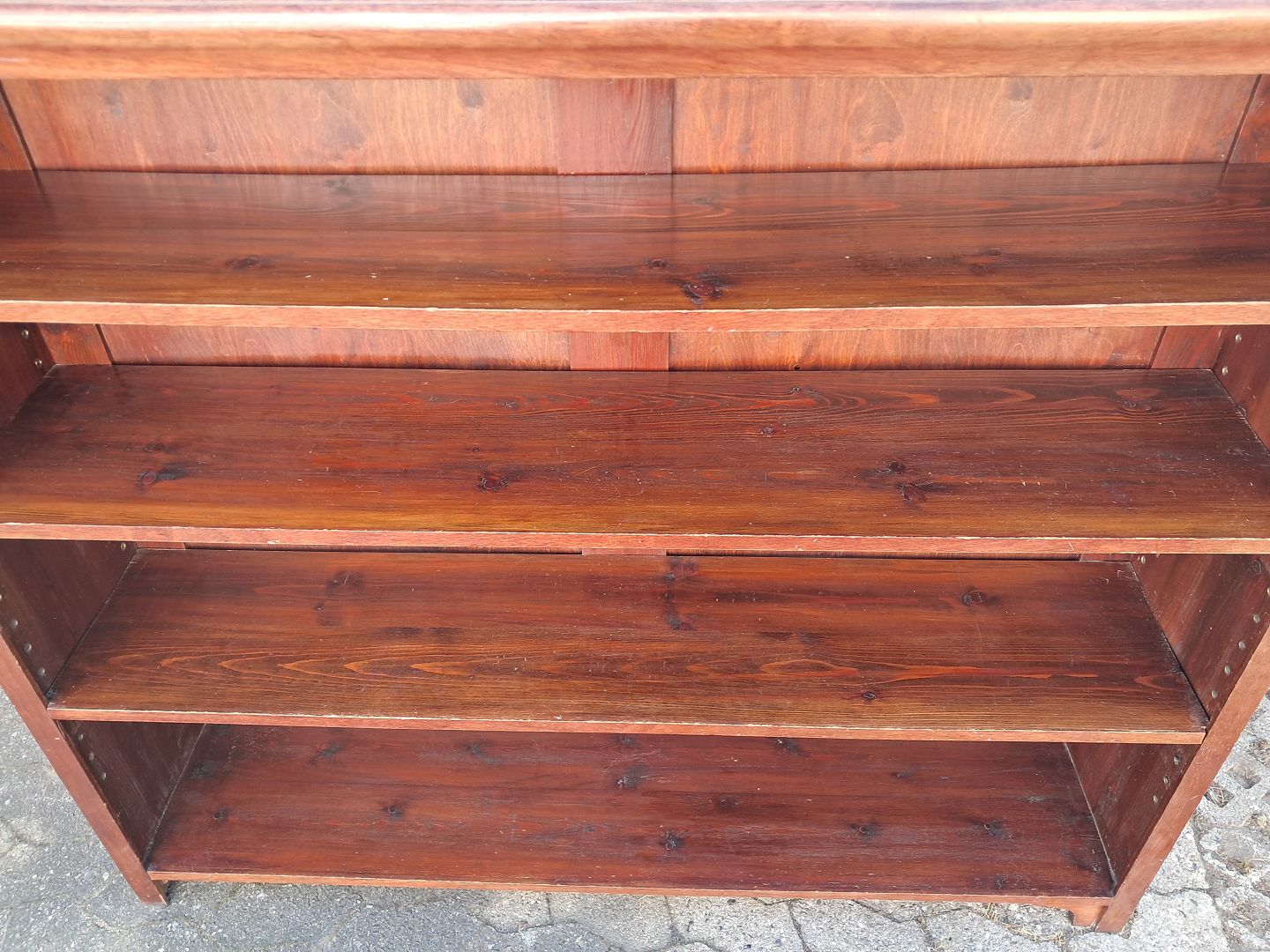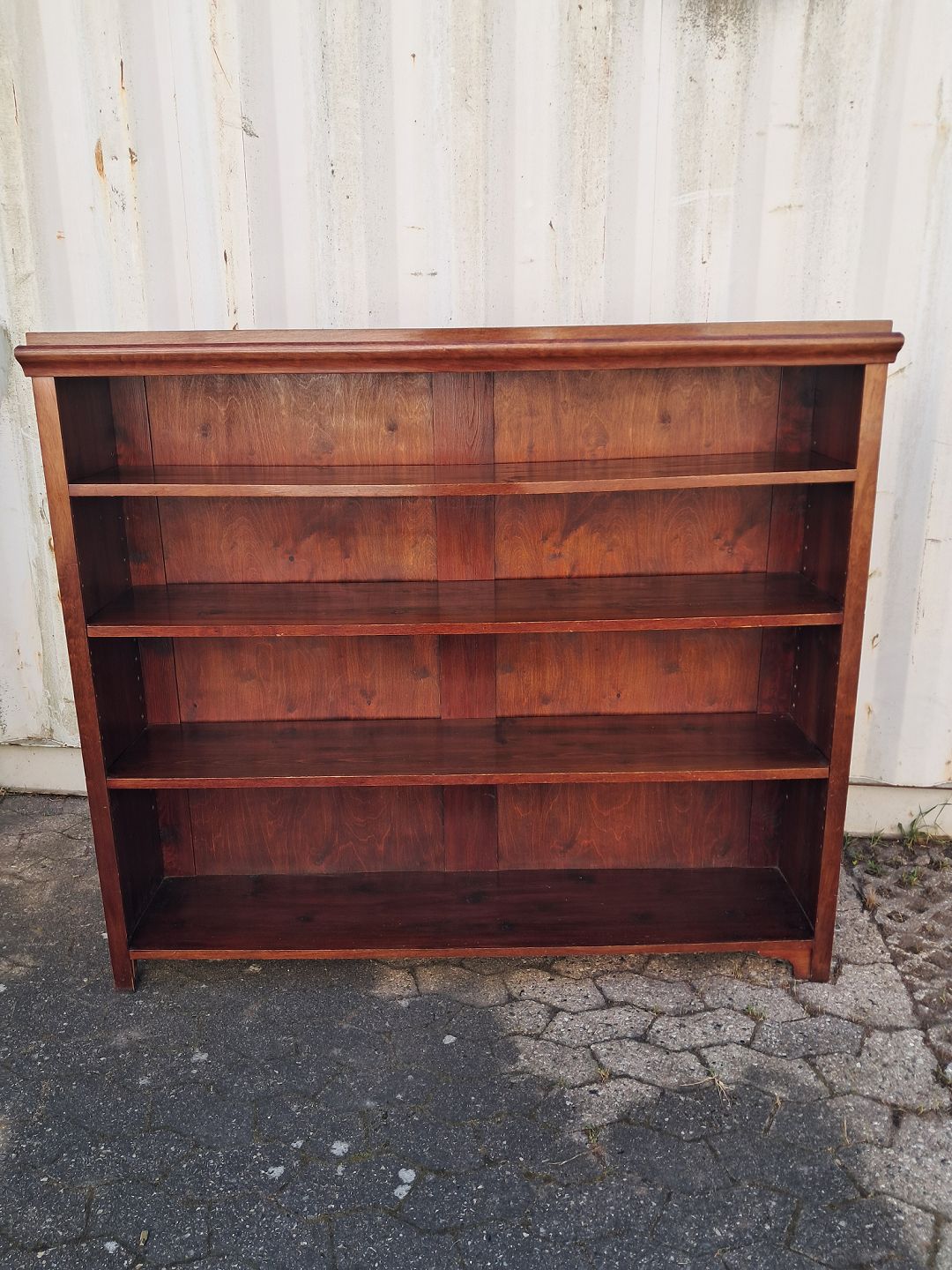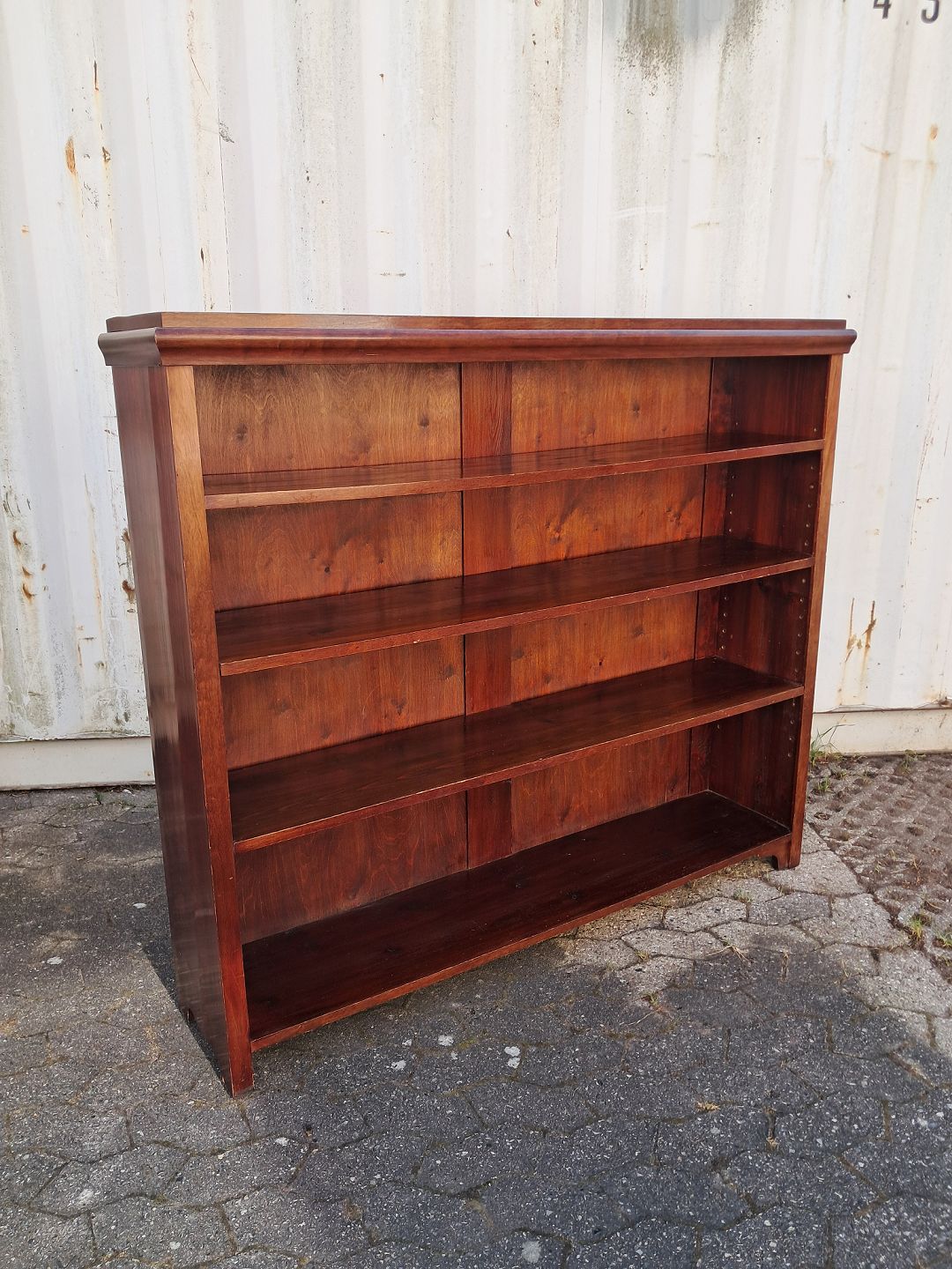 Reol i fineret mahogni, fra 1910erne. Den har brugsspor. Højde 140cm Bredde 147cm Dybde 32cm Emne nummer: 77989