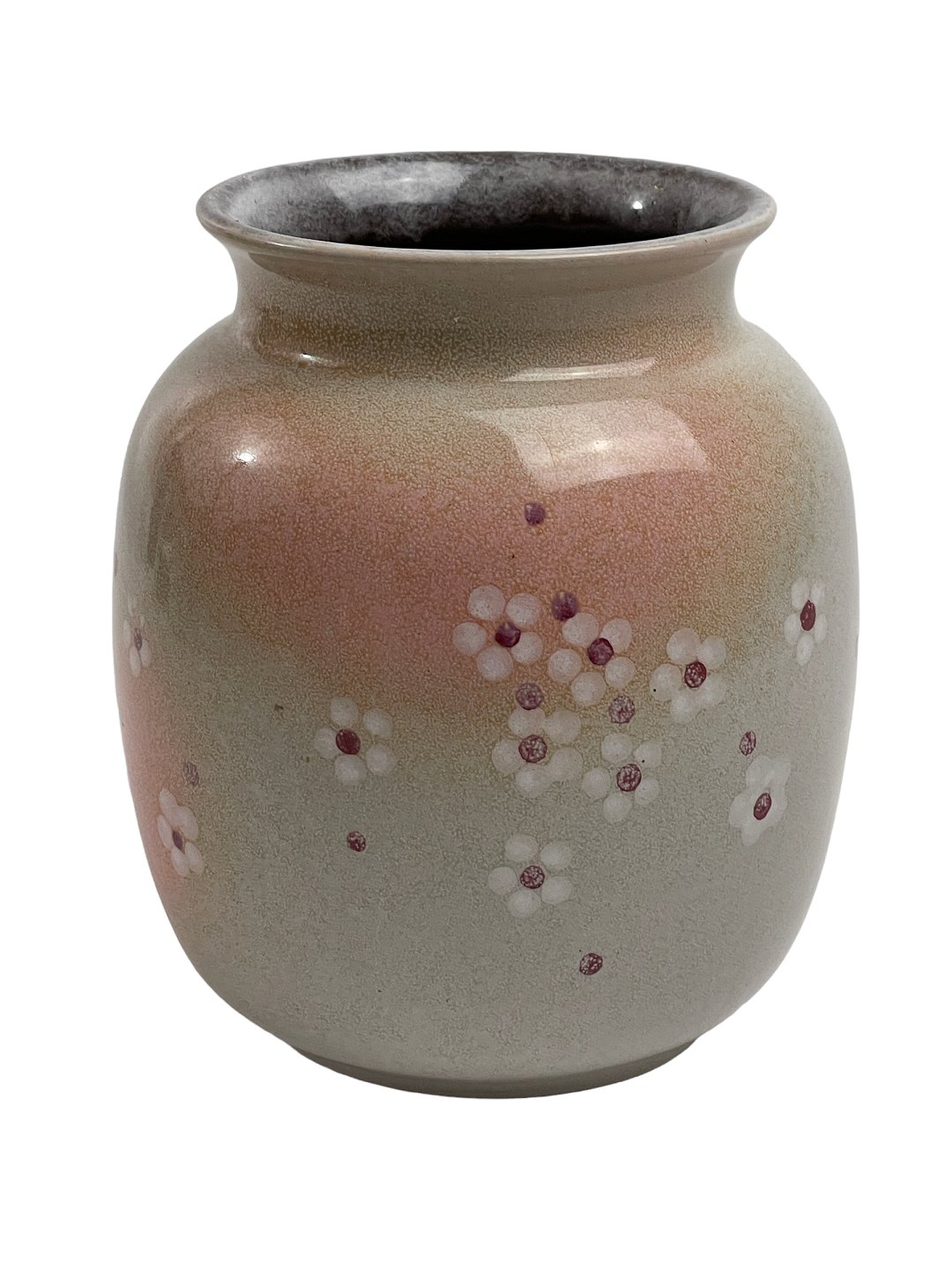 Beautiful ceramic vase with cherry blossoms from East German Strehla ceramics.