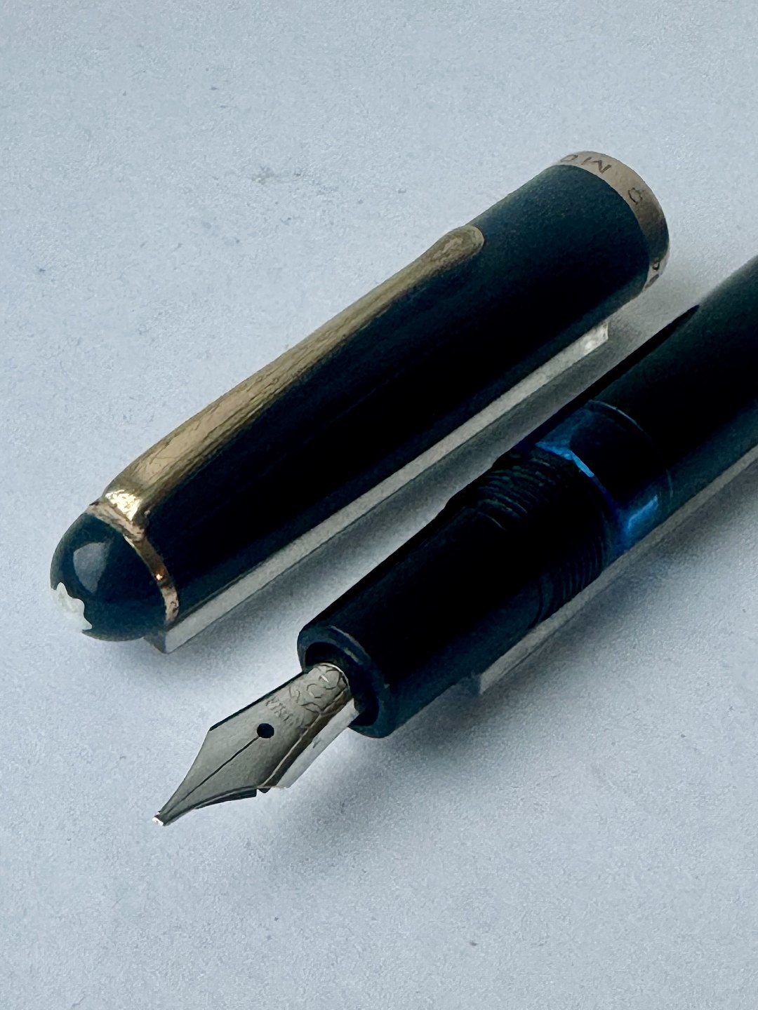 Black Montblanc no. 342 with piston filler. The pen has been tested and is ready to be used. Made in Germany in the 1950s. No damage or repairs. All parts on this fountain pen are original Montblanc parts belonging to this model. Length: 12.7 cm