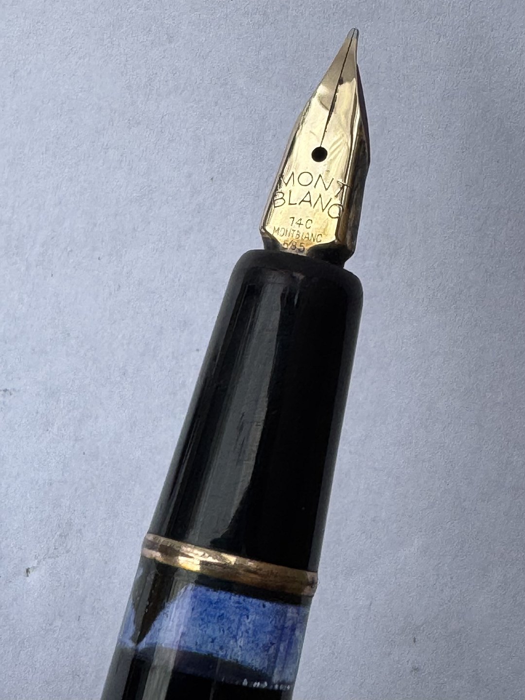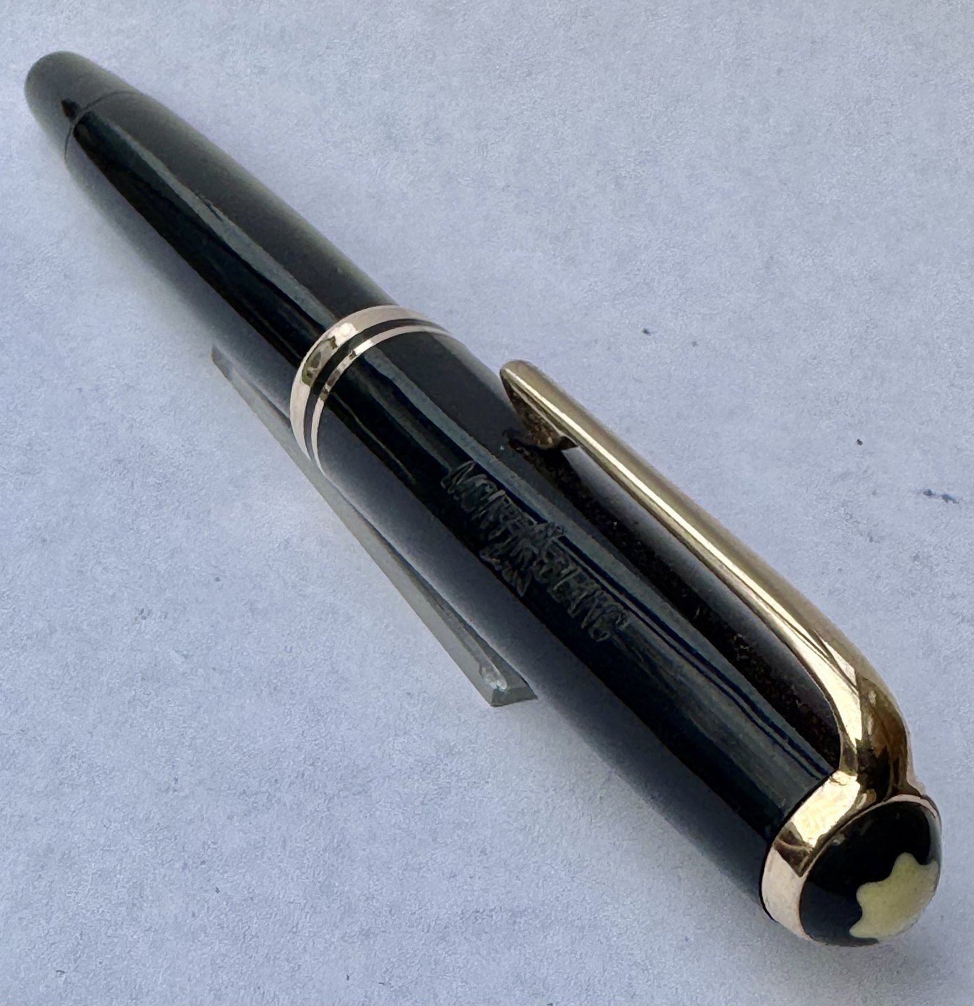 Montblanc gold nib. The model number is engraved on the bottom button. The fountain pen was made in the 1950s in Germany. Dimensions: 13 cm.