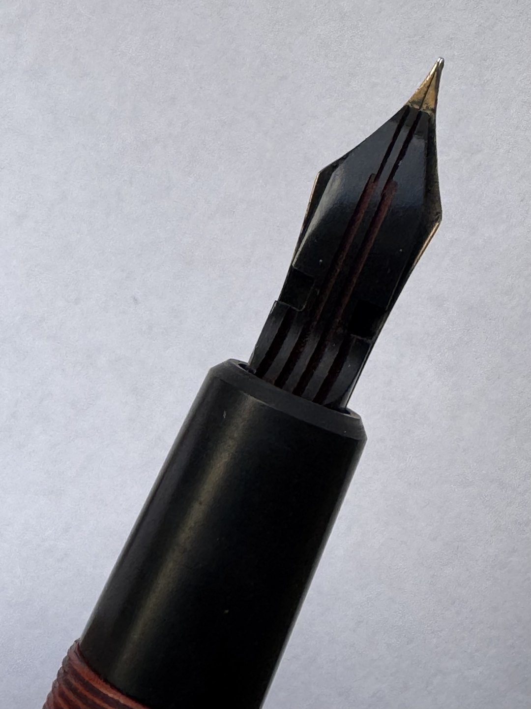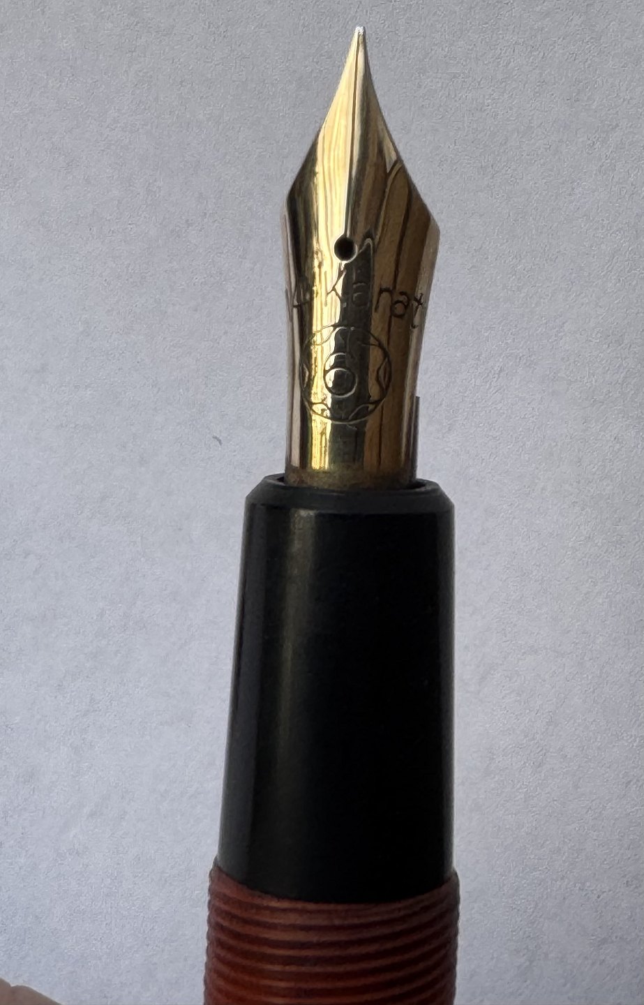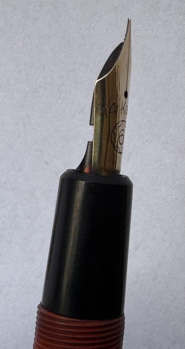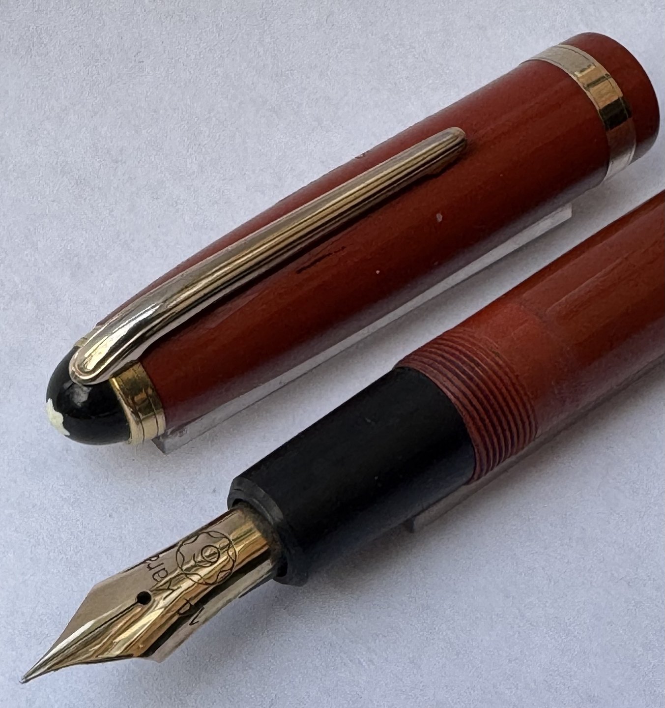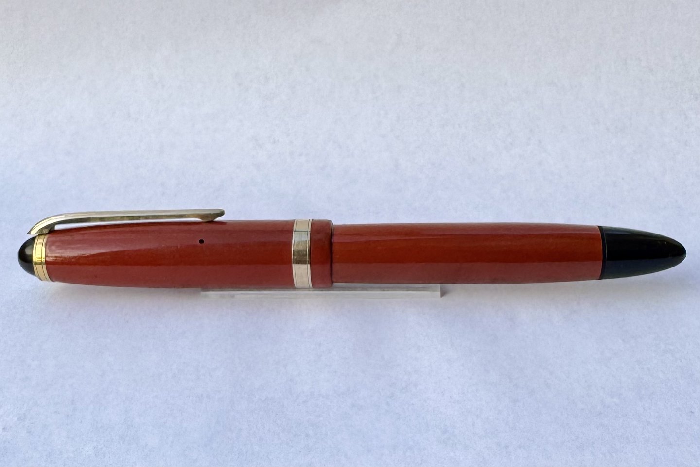 Coral red Montblanc no. 216 fountain pen. Push button filler. Made in Germany in the 1950s. In good condition without damage or repairs. All parts original Montblanc from the production period with, among other things, a beautiful no. 6 nib in 14 carat gold. Engraved STENLILLE 114 on the side of the pen. L.13.8 cm