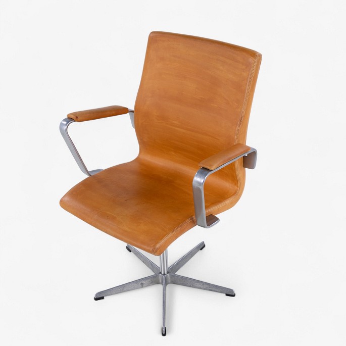 Lavrygget 'Oxford'-kontorstol i patineret naturlæder på stel af stål.