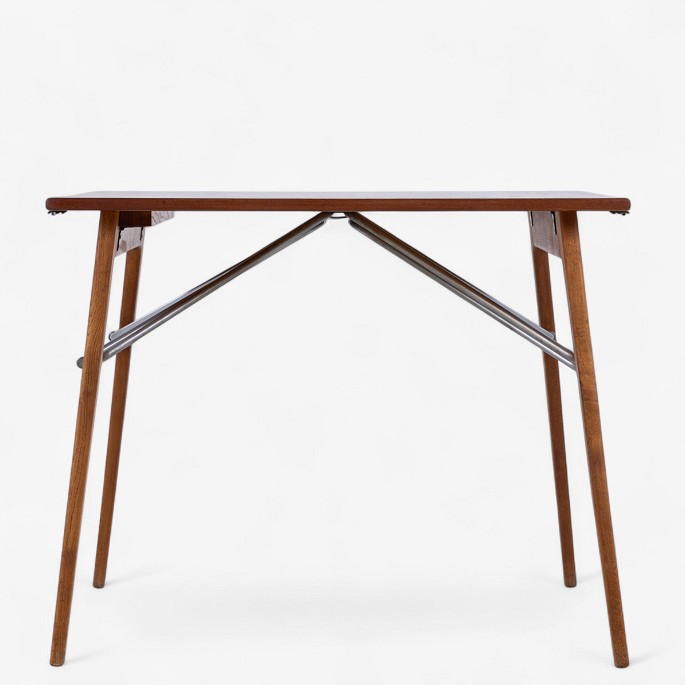 Spisebord med stel i massiv egetræ og top i teak med to tillægsplader.