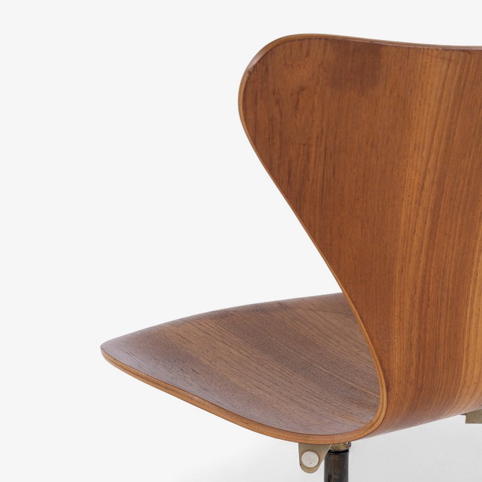 AJ 3117 - 'Syver'-kontorstol i patineret teak på gammelt stel med højdejustering. Stemplet fra producent.