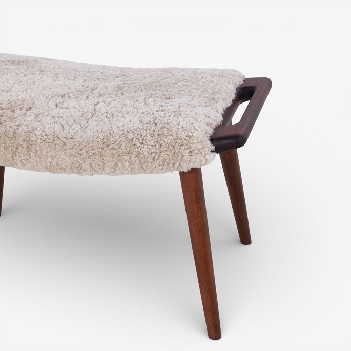 AP 19 - Nybetrukket Bamsestol i lammeskind (farve: Moonlight) m. skammel.