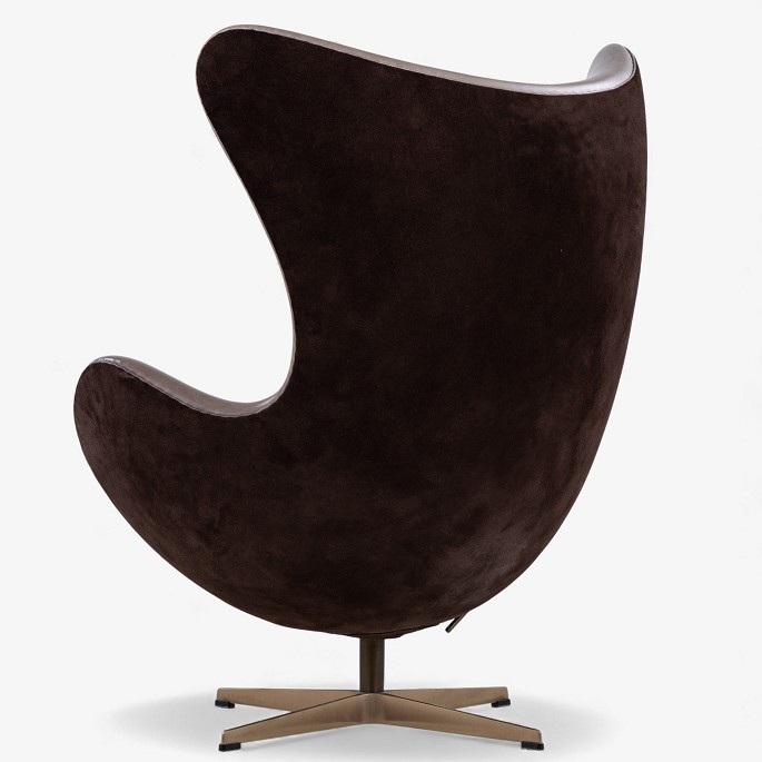 AJ 3316 - 'Ægget'-lænestol m. skammel i originalt, mørkebrunt Elegance-læder og brunt ruskind på stel i bronze. Jubilæumsmodel fra 2008. Nummeret 489/999.
