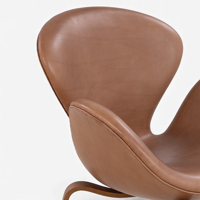 AJ 4325 - 'Svanen'-lænestol i nyere cognac-farvet anilinlæder med stel i træ. Stemplet fra producent.