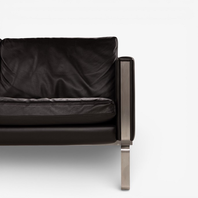 CH 102 - 2 pers. sofa i mørkebrunt, patineret semi-anilinlæder med stel i stål. Mærket fra producent.