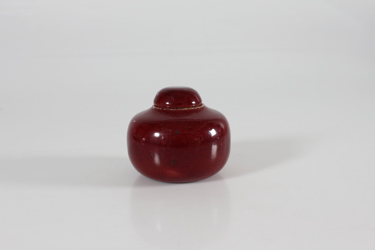 Bing & Grøndahl Valdemar Pedersen (1906-81) Rare small lidded jar of stoneware with glossy oxblood glaze With stamp from the 1950s Height 8 cm Diameter 9 cm Mint condition - 1. quality