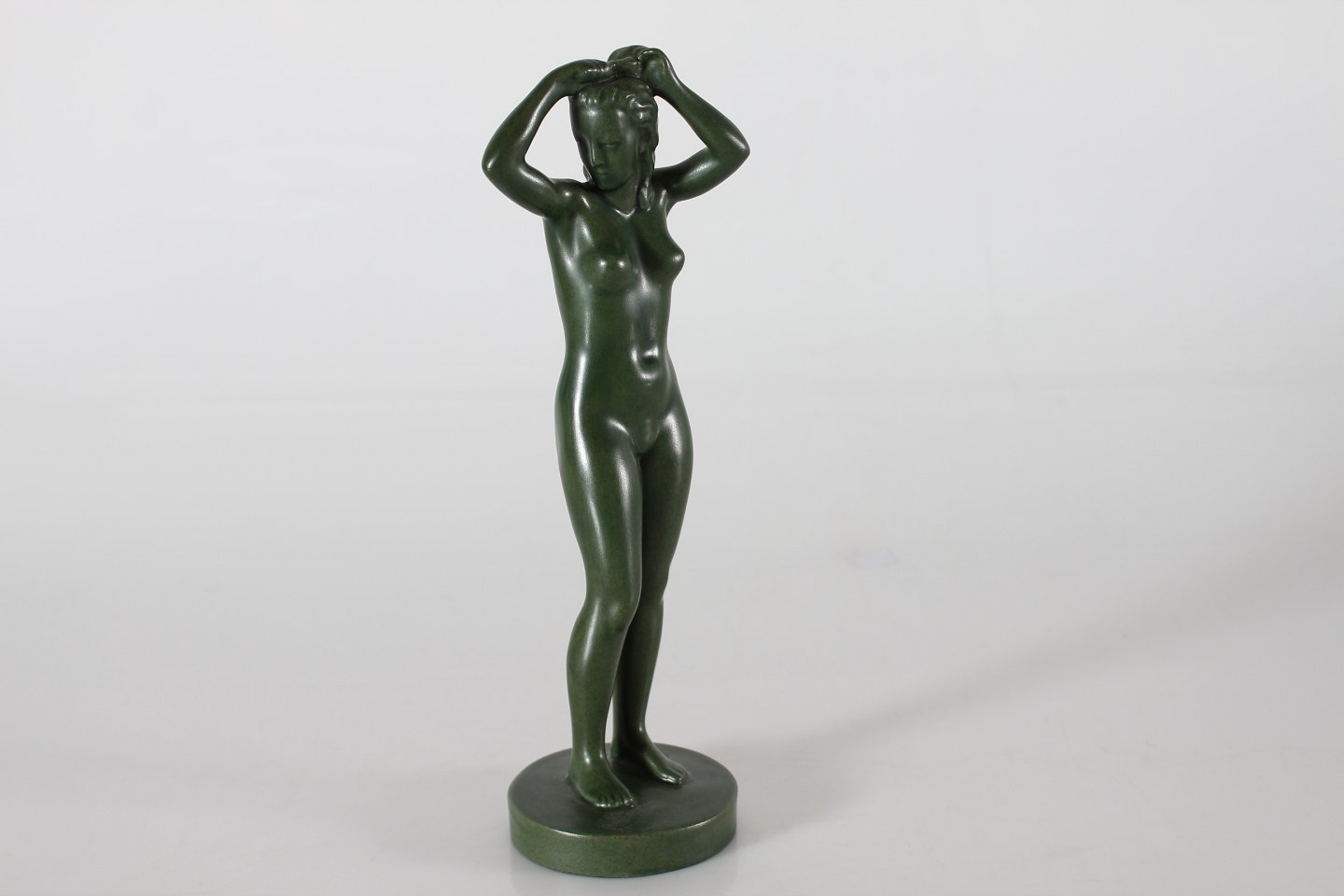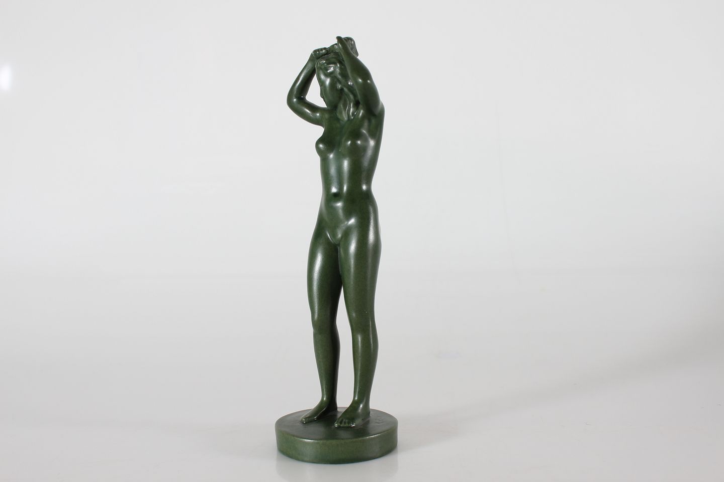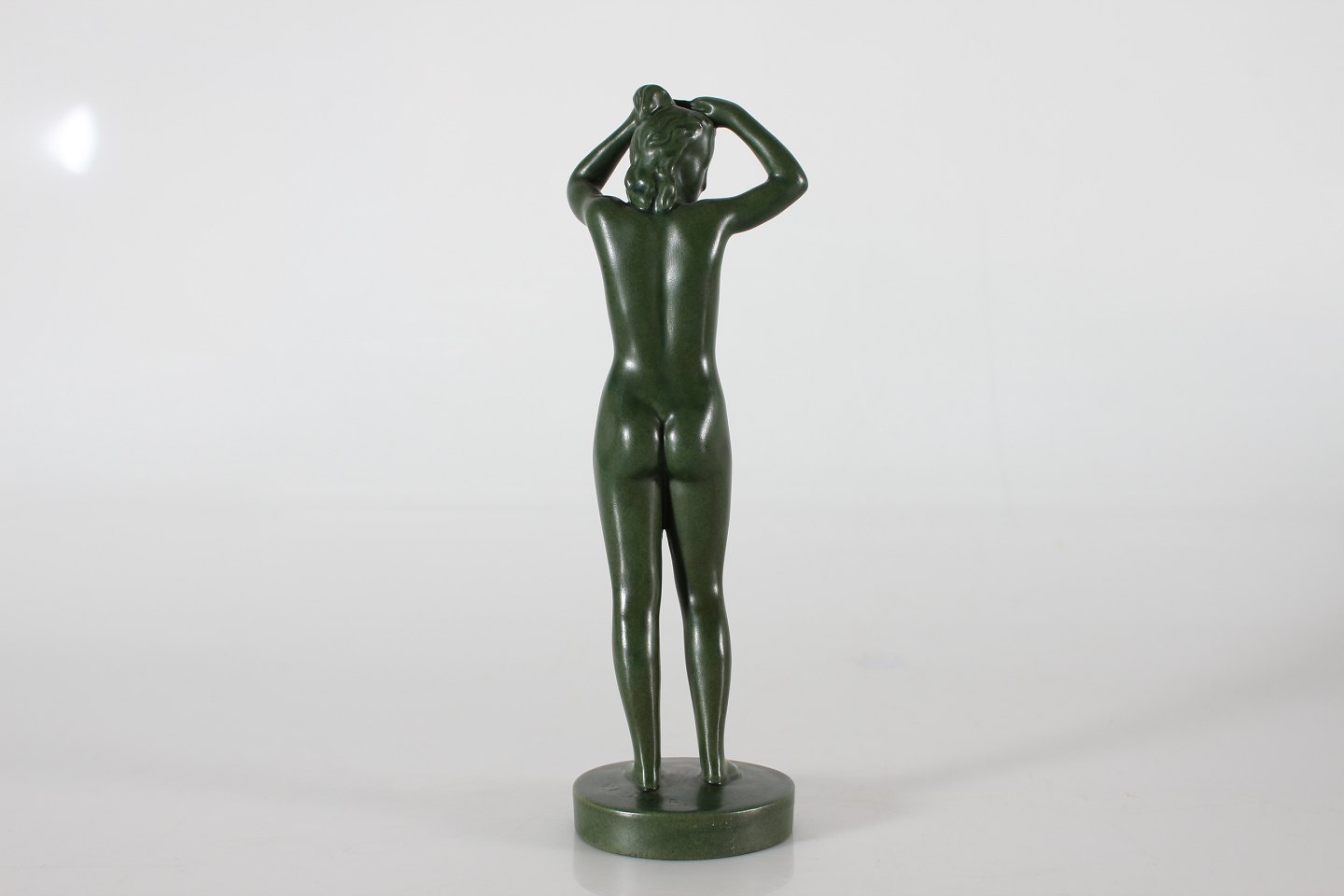 Ipsens Enke Jadegrøn figur af keramik Morgentoilette nr. 901 Formgjort af Volmer Bahner Højde 24 cm Fin stand