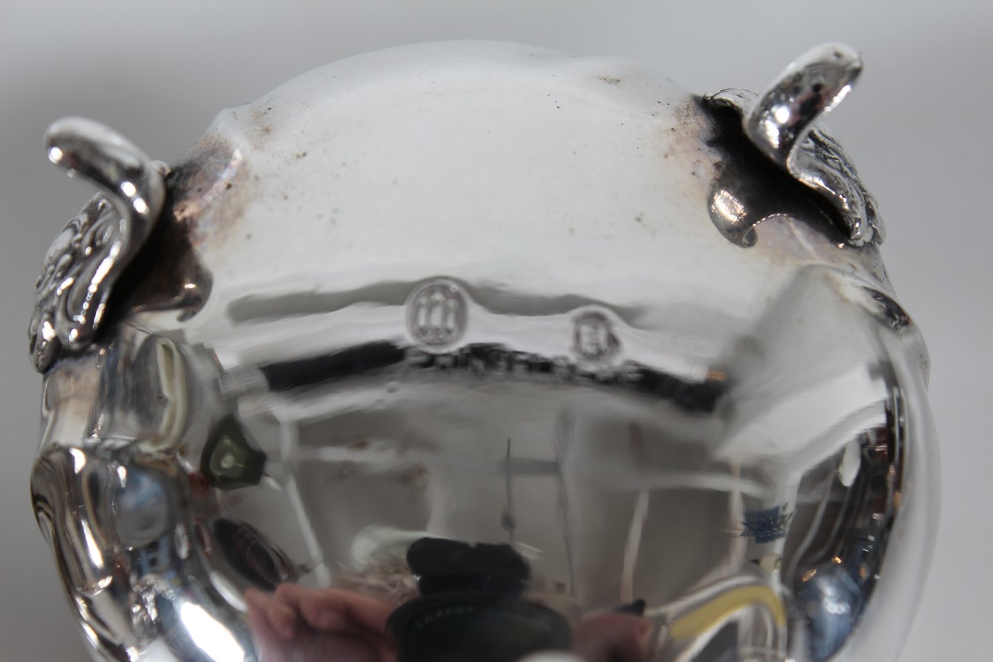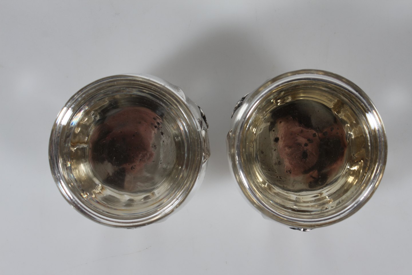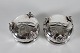 F. Hingelberg Par sølv saltkar i Rococo form på 3 små ben m/indsats af klart glas Ægte sølv stemplet med 3 tårne 1923 og 1924 Højde 4 cm Diameter 5 cm Fin stand med hele glas og lidt patina på sølvdelen