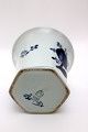 Aluminia, Tranquebar lyseblå fajance med mørkeblå tulipan og flettet bort designet af Christian Joachim. Produceret fra 1914 til 1969, hvor det overgik til Royal Copenhagen. Håndmalet. Sekskantet vase med rund krave. Nr. 11/1239. 14 x 15 cm. Højde 10,5 cm. Øverste diameter 11,3 cm. Flot stand med brugsspor nederst i bund indvendig. I. sortering. Pris: 300 kr.