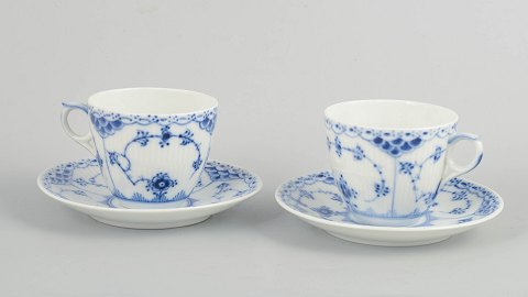 Royal Copenhagen Musselmalet Halvblonde, sæt af to kaffekopper med tilhørende underkopper.