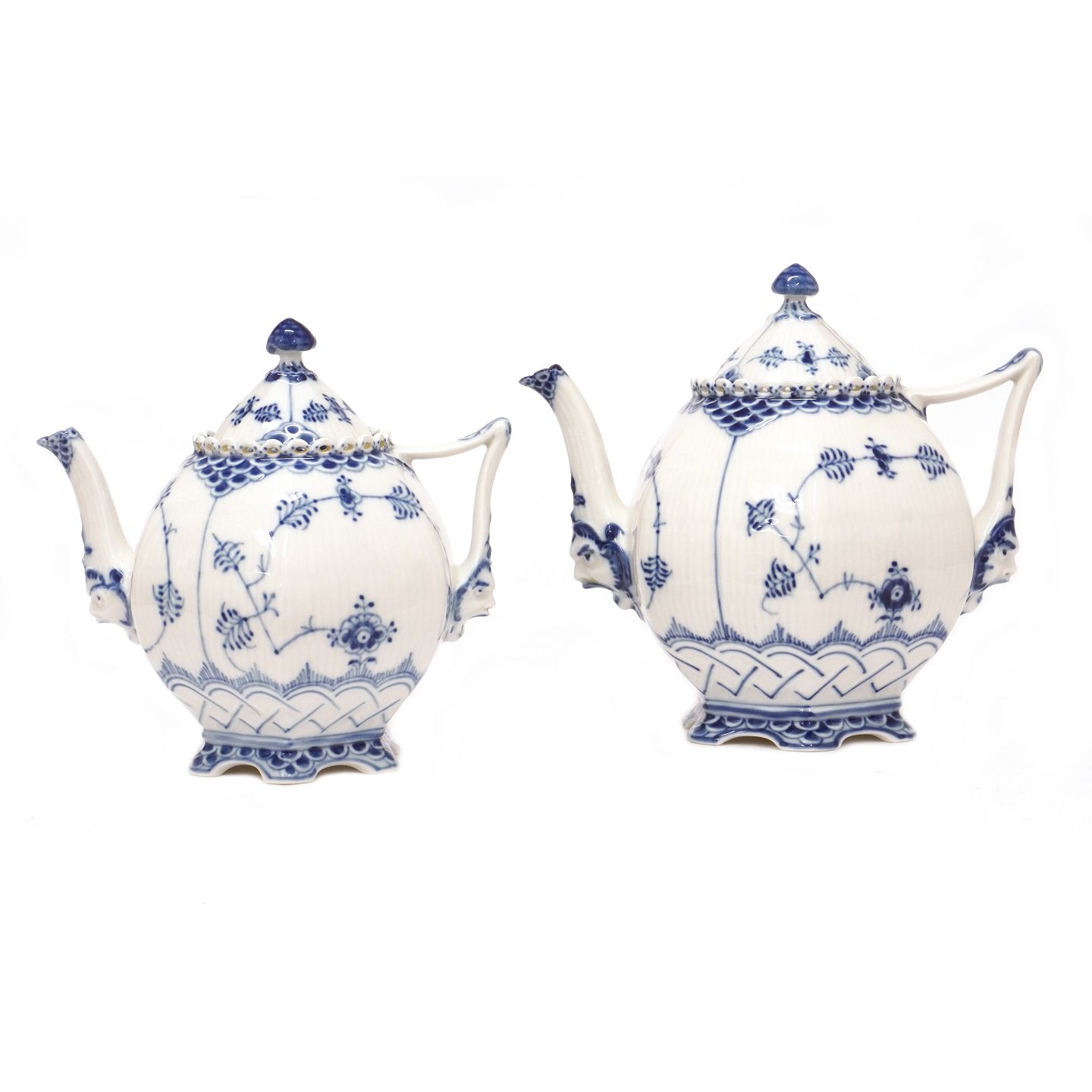Royal Copenhagen Zwiebelmusster Vollspitze Teekannen 1118 & 1119. H: 17 & 19cm
