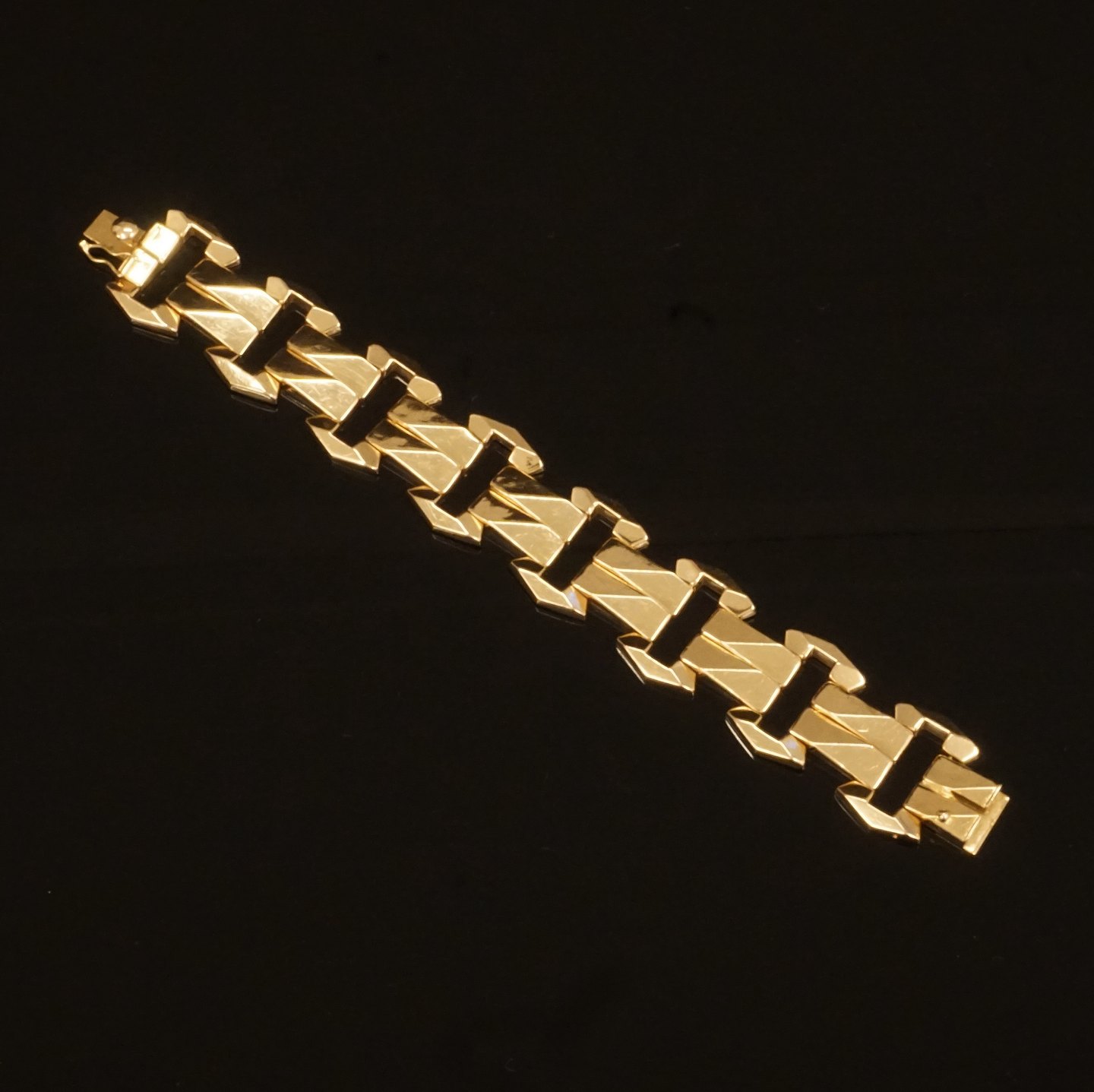 Leddelt armlænke i 18kt guld med kasse- og sikkerhedslås. L: 20cm. V: 34,5gr
