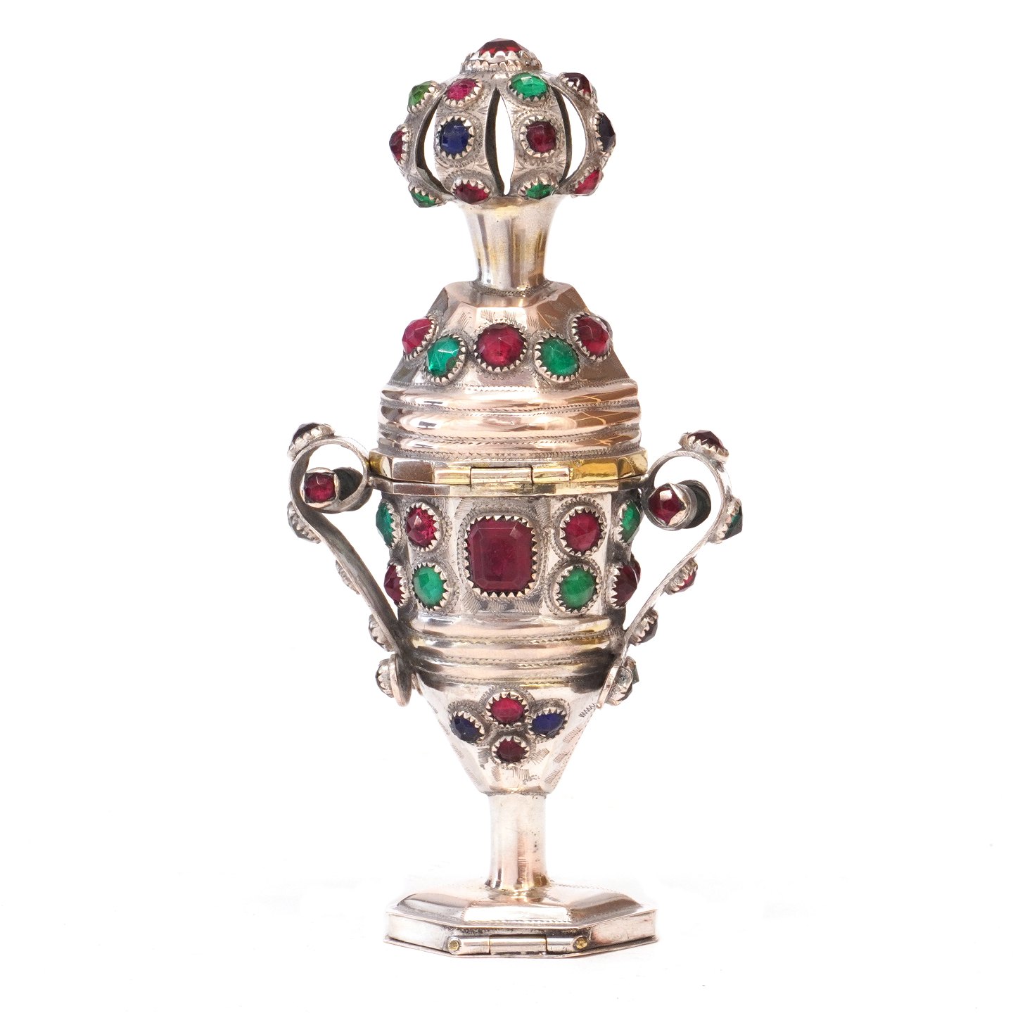 Hovedvandsæg i delvist forgyldt sølv prydet med f