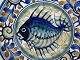 Stor Aluminia Platte dekoreret med fiskemotiv SOLGT