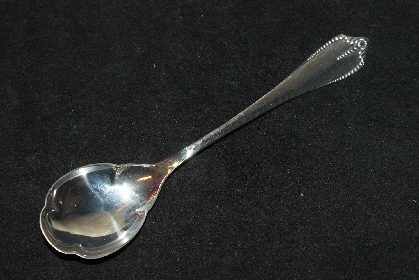 Jam spoon Frederiksborg Silver Length 13.5 cm. Beautiful and well maintained The cutlery is polleret and packed in a bag.