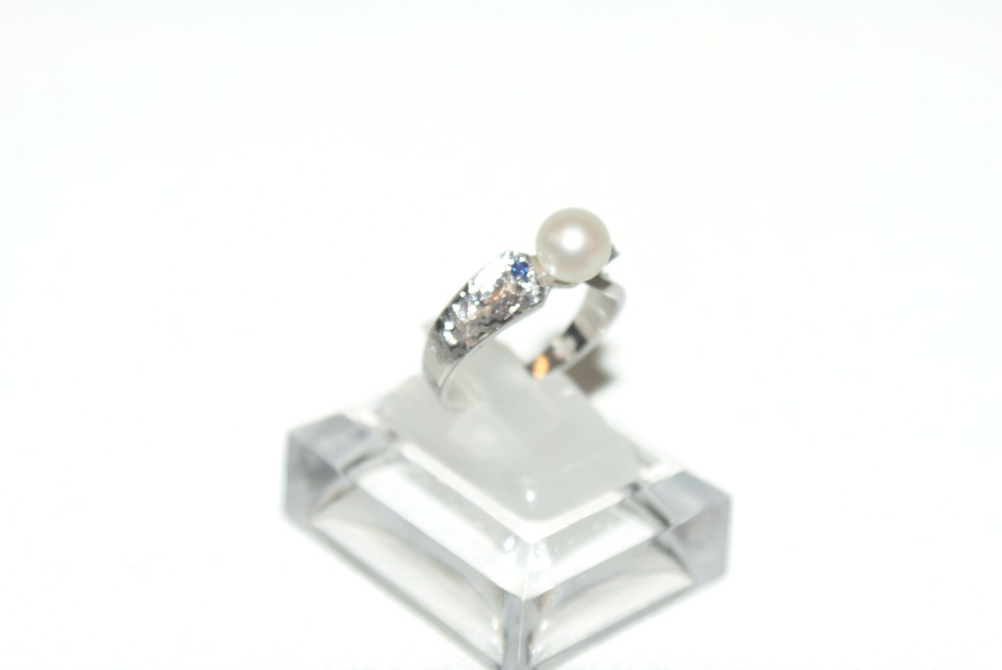 Ladies' ring in 18 carat white gold with pearl and blue sapphire
