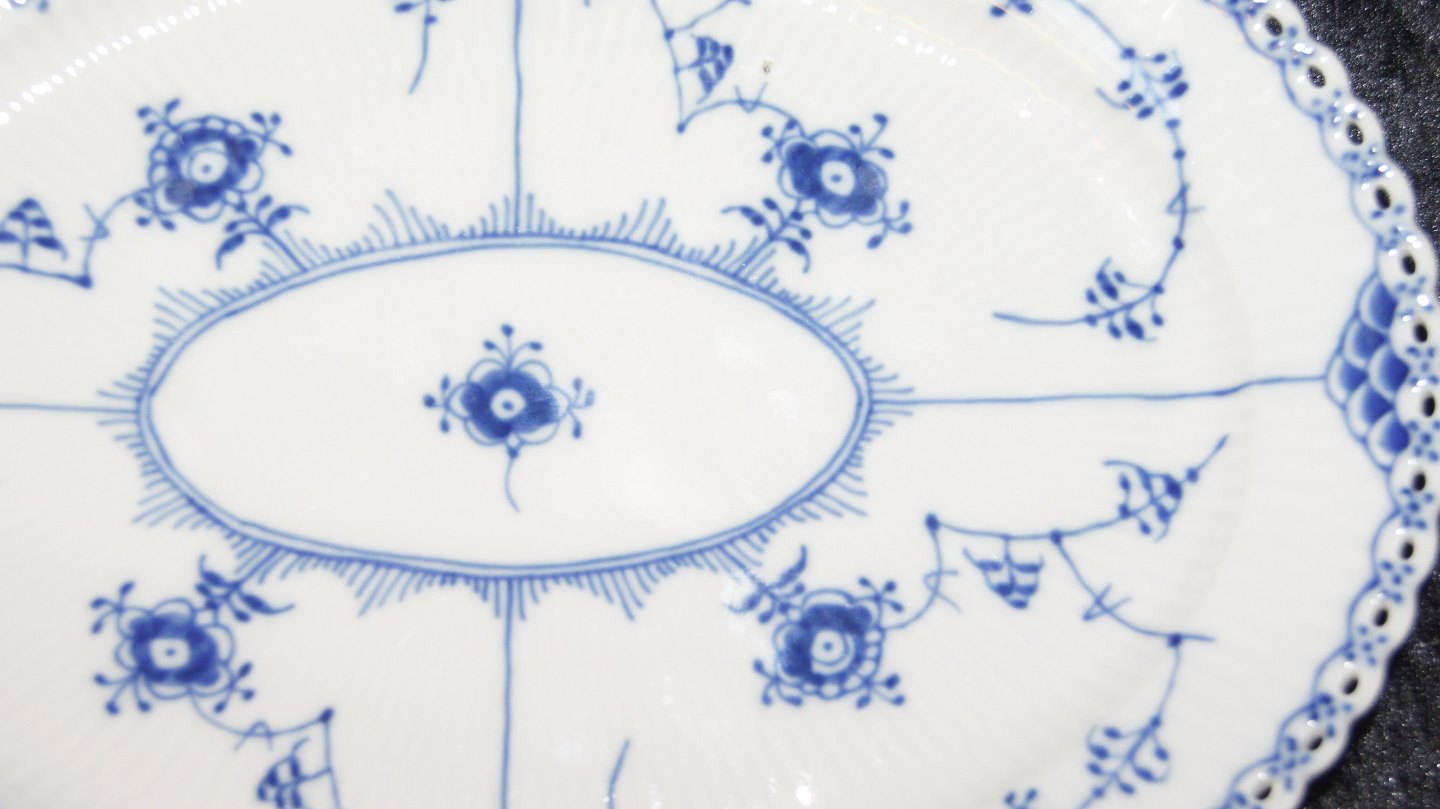 Kongelig Musselmalet Helblonde, Aflangt Fad.
