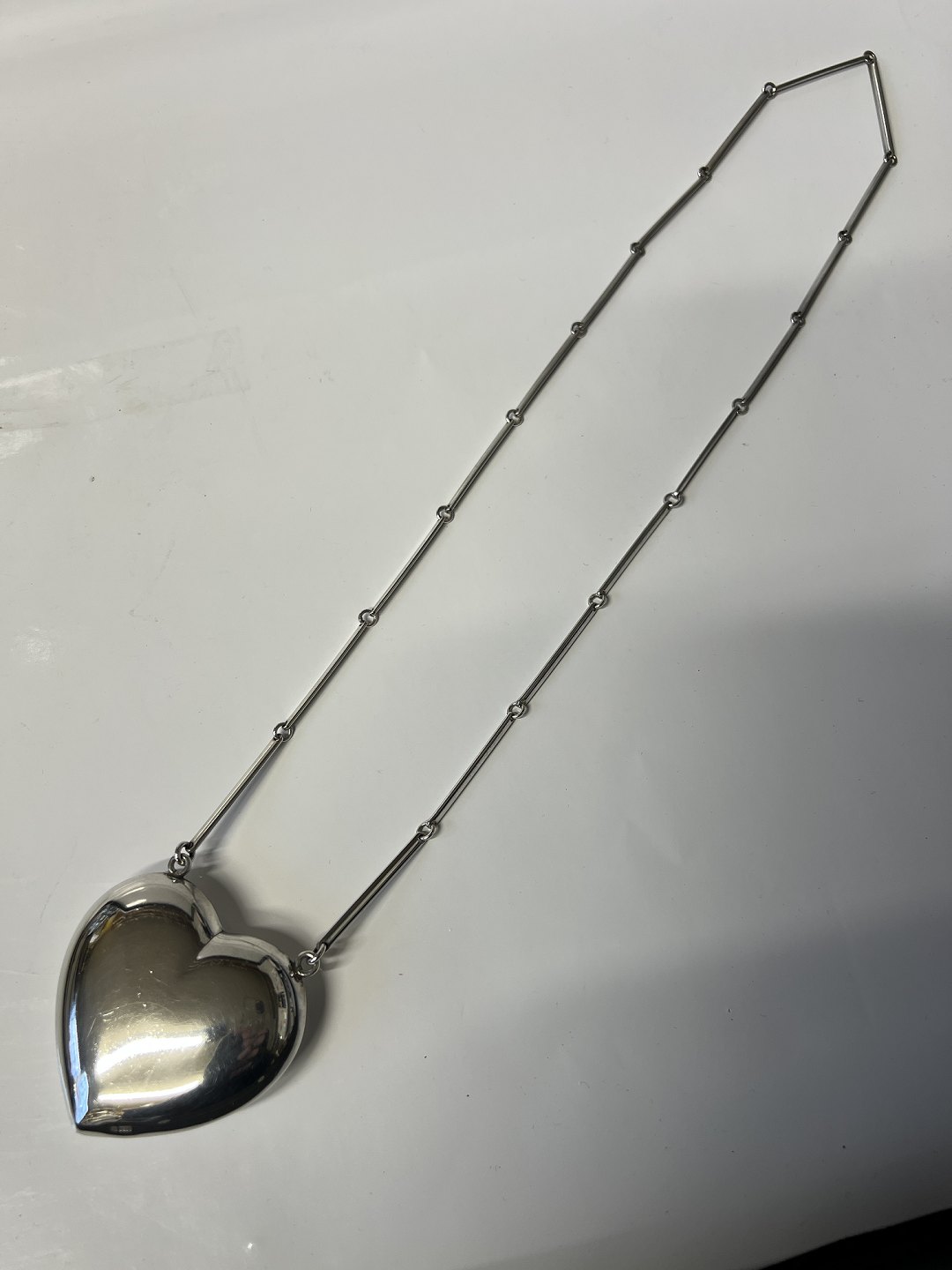 Heart with chain in sterling silver Stamped HS 925S Length of the silver chain 66 cm Length of the Heart 5.3 cm Wide. 6 cm Nice and well maintained condition