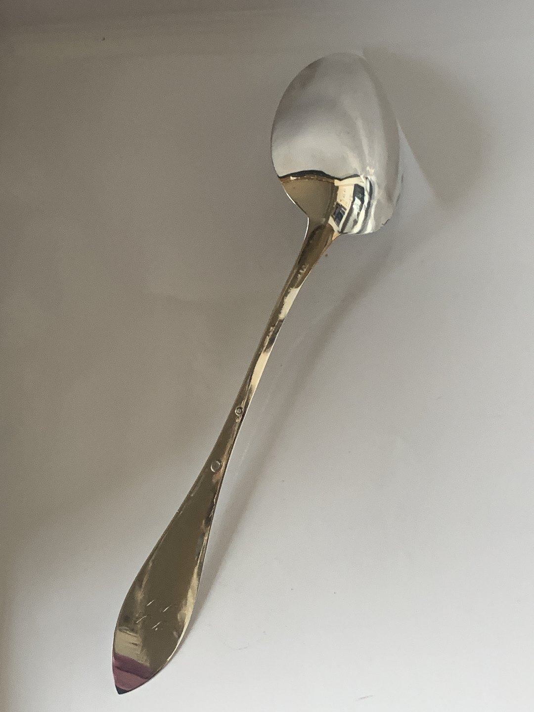 Potageske i Sølv Længde ca 35 cm Stemplet År. 1919 Christian. Fr. Heise Med Gravering Pæn og pudset stand Pakket i pose